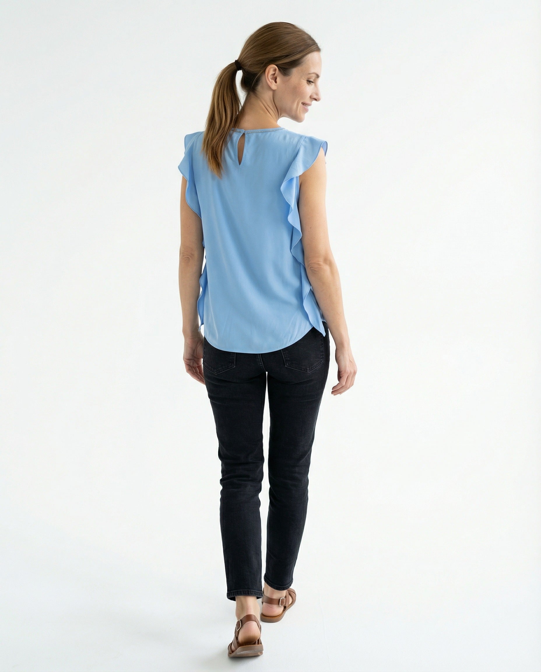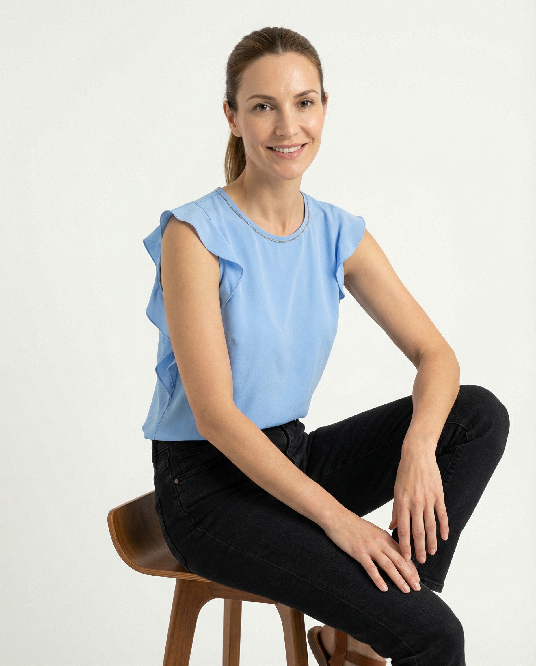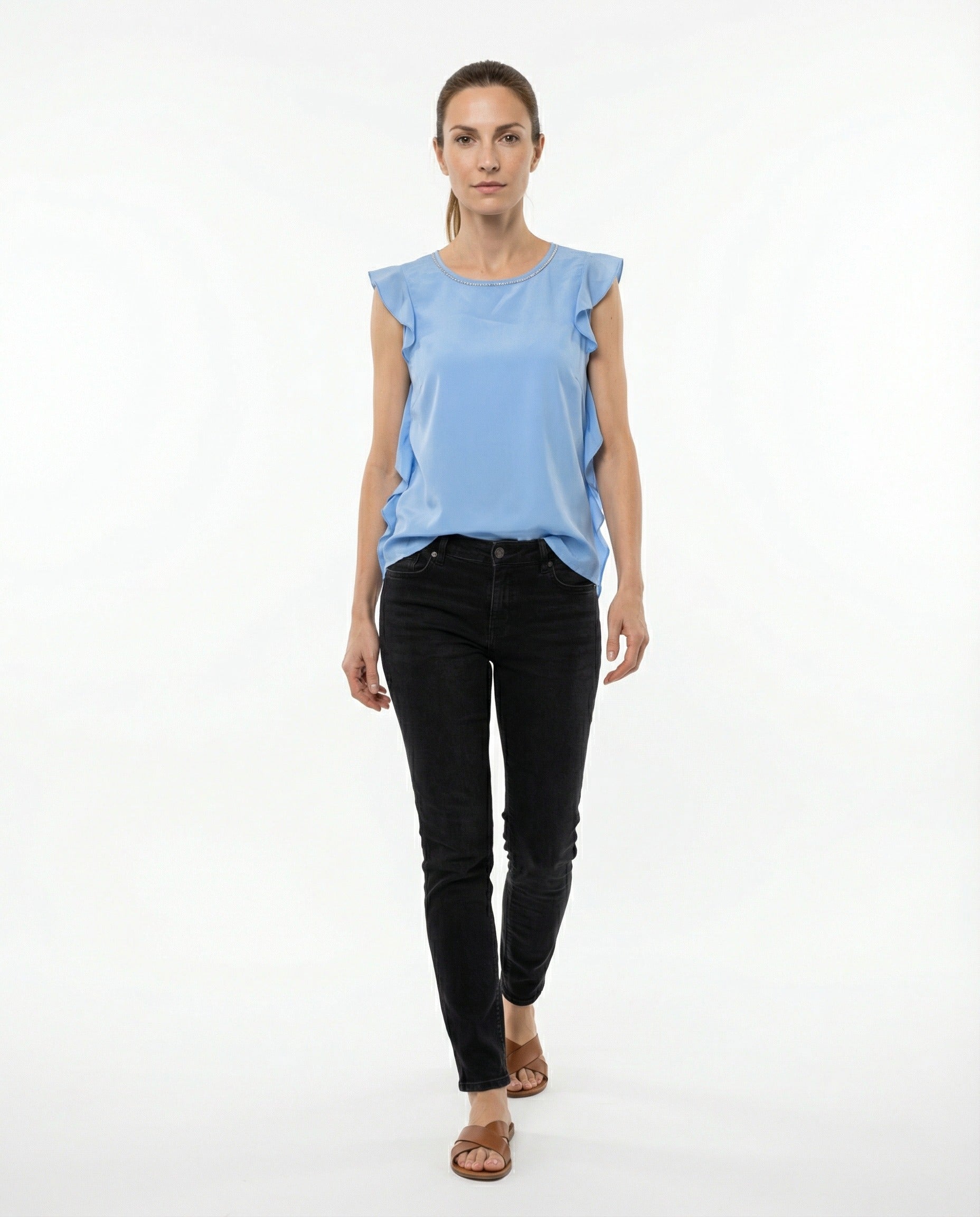 PESERICO WOMEN'S MAJOLICA BLUE SILK SLEEVELESS BLOUSE