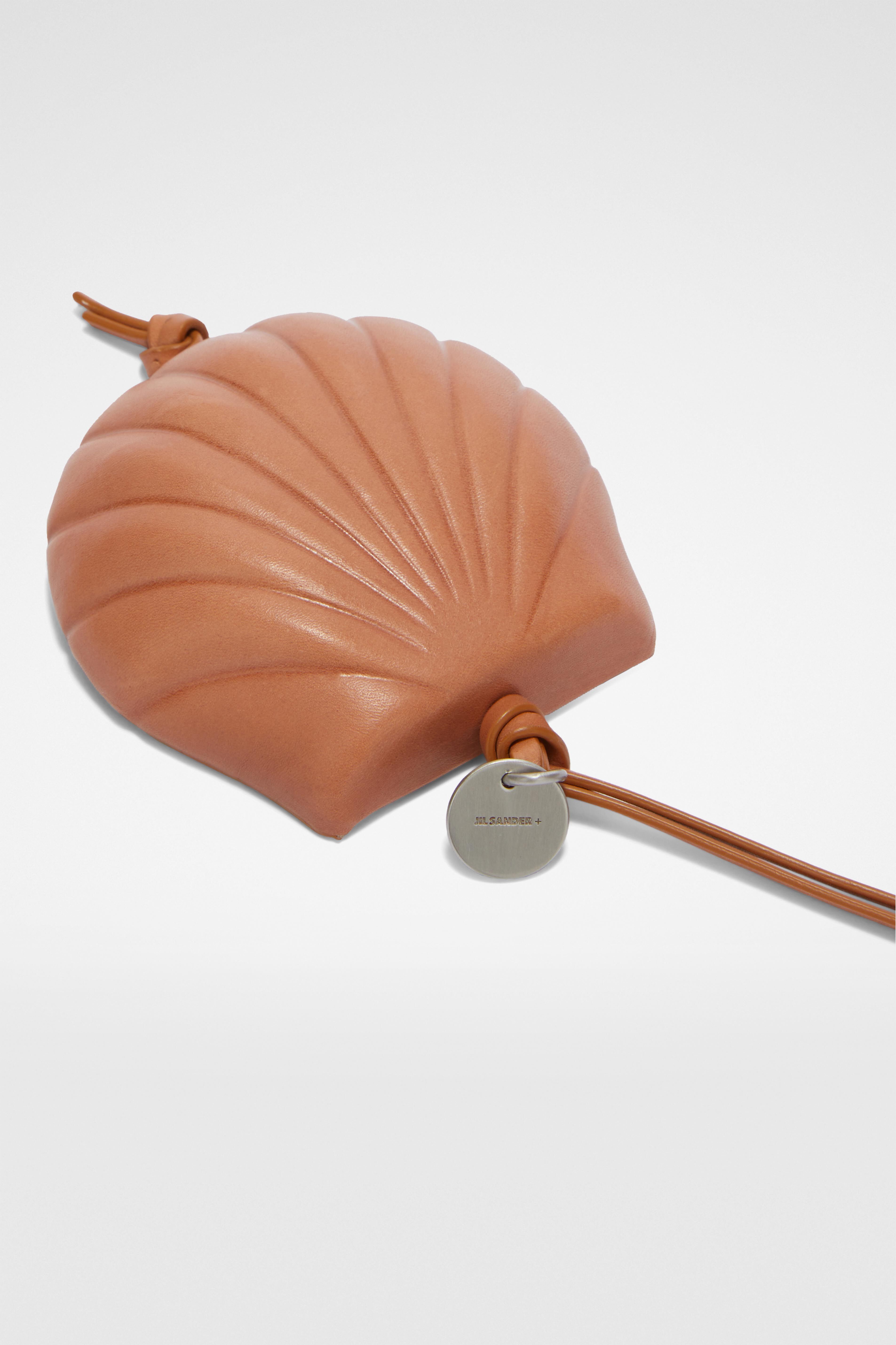 JIL SANDER WOMEN'S TAN LEATHER SHELL-SHAPED POUCH