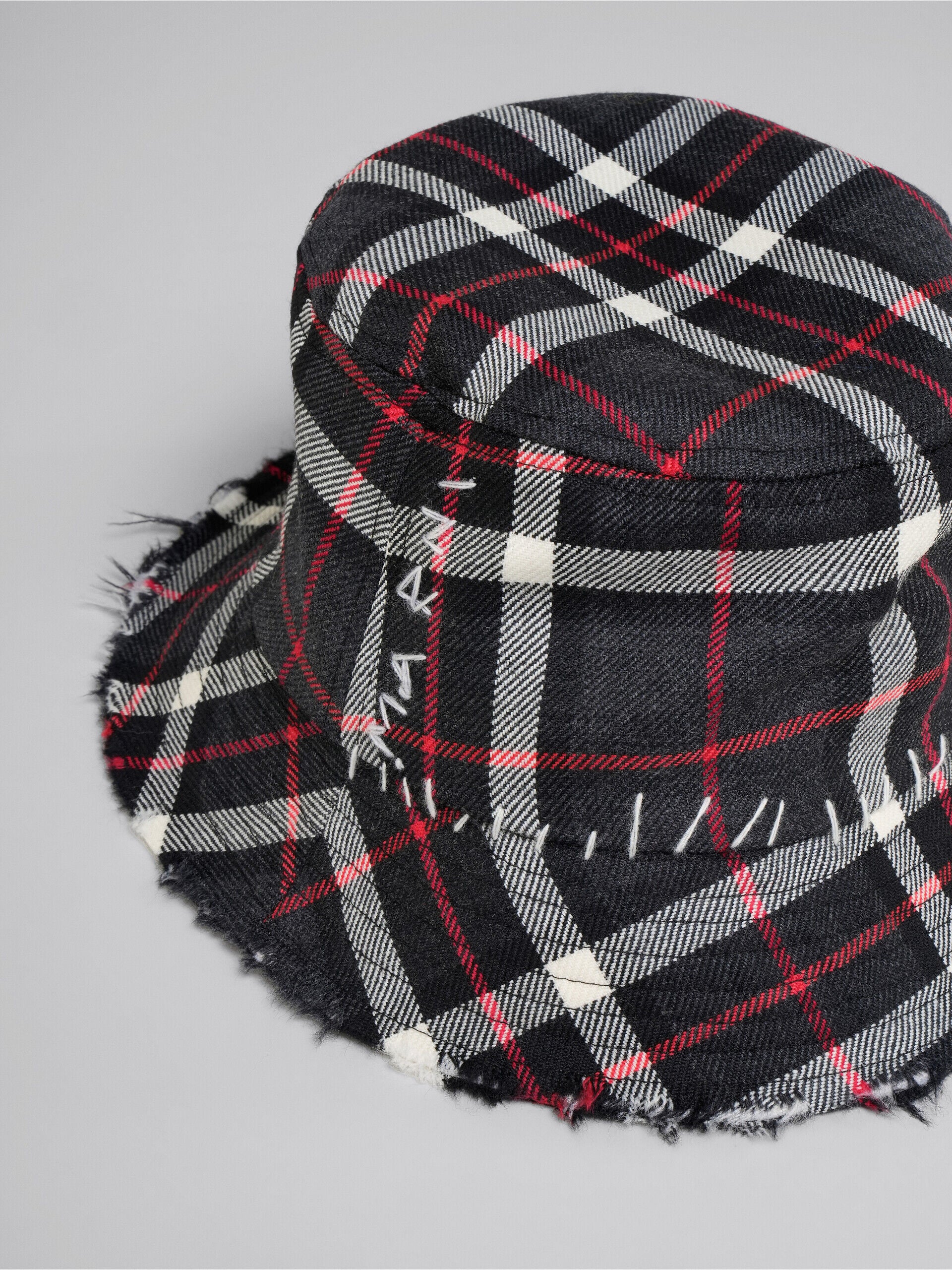 MARNI MEN'S PLAID BUCKET HAT WITH STITCHING DETAIL