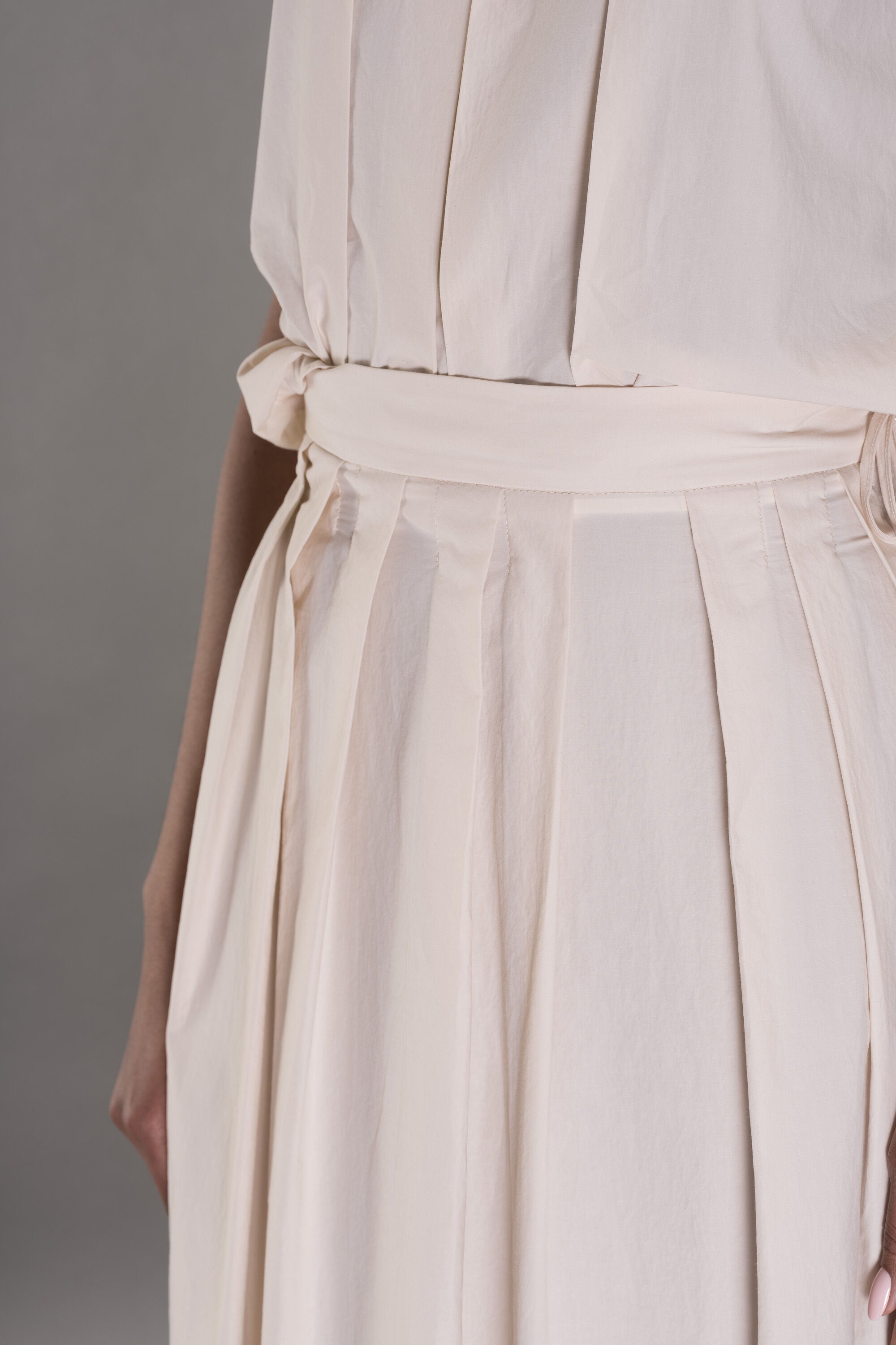 MOORER WOMEN'S ECRU PLEATED MIDI DRESS