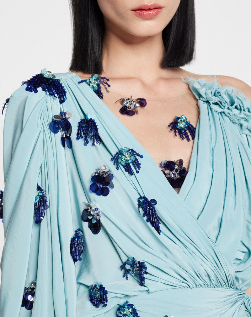 LANVIN WOMEN'S MENTHE DRAPED EMBROIDERED DRESS