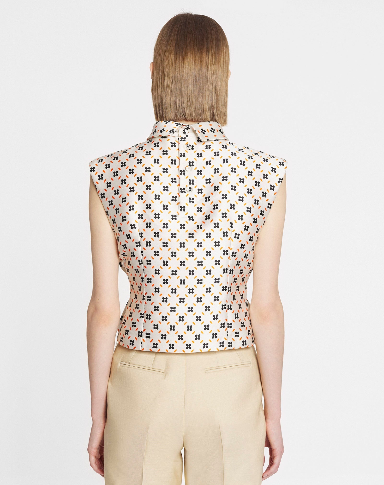 LANVIN WOMEN'S CREAM PATTERNED SLEEVELESS CROPPED TOP