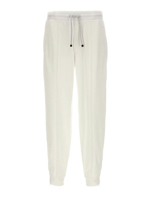 BRUNELLO CUCINELLI MEN'S OFF WHITE TAILORED TROUSERS WITH DRAWSTRING