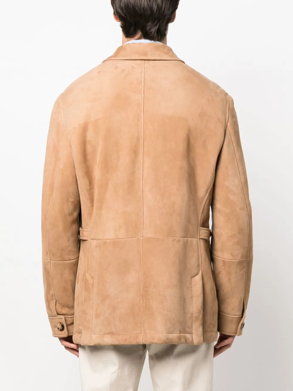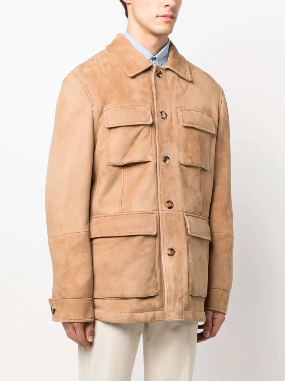 BRUNELLO CUCINELLI MEN'S TAN SUEDE UTILITY JACKET