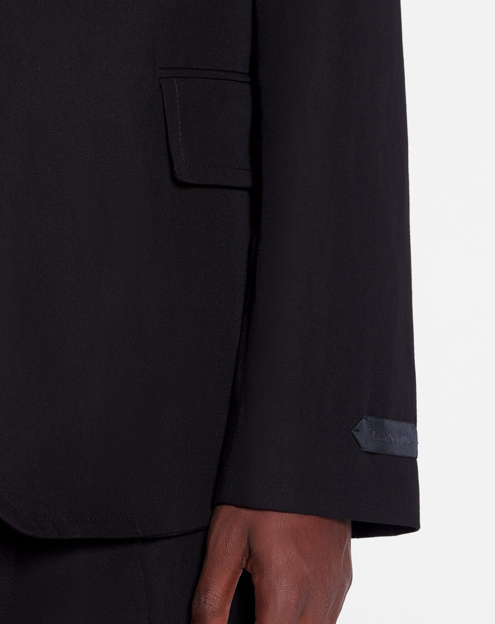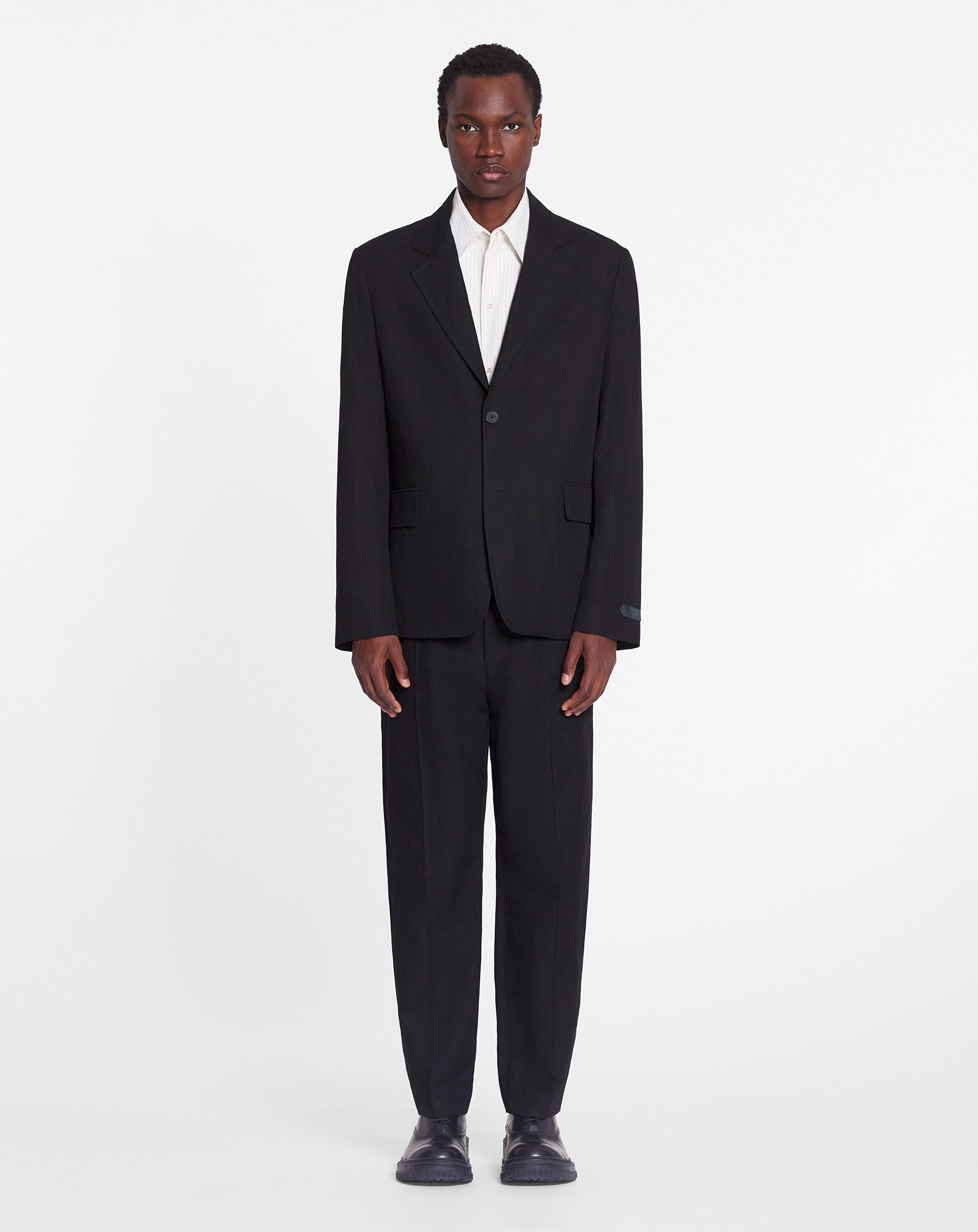 LANVIN MEN'S BLACK LINEN DECONSTRUCTED SINGLE-BREASTED JACKET