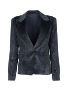 BRUNELLO CUCINELLI WOMEN'S NAVY TEXTURED TAILORED JACKET
