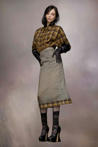 MAISON MARGIELA WOMEN'S DARK GREY MIDI SKIRT WITH PLAID HEM