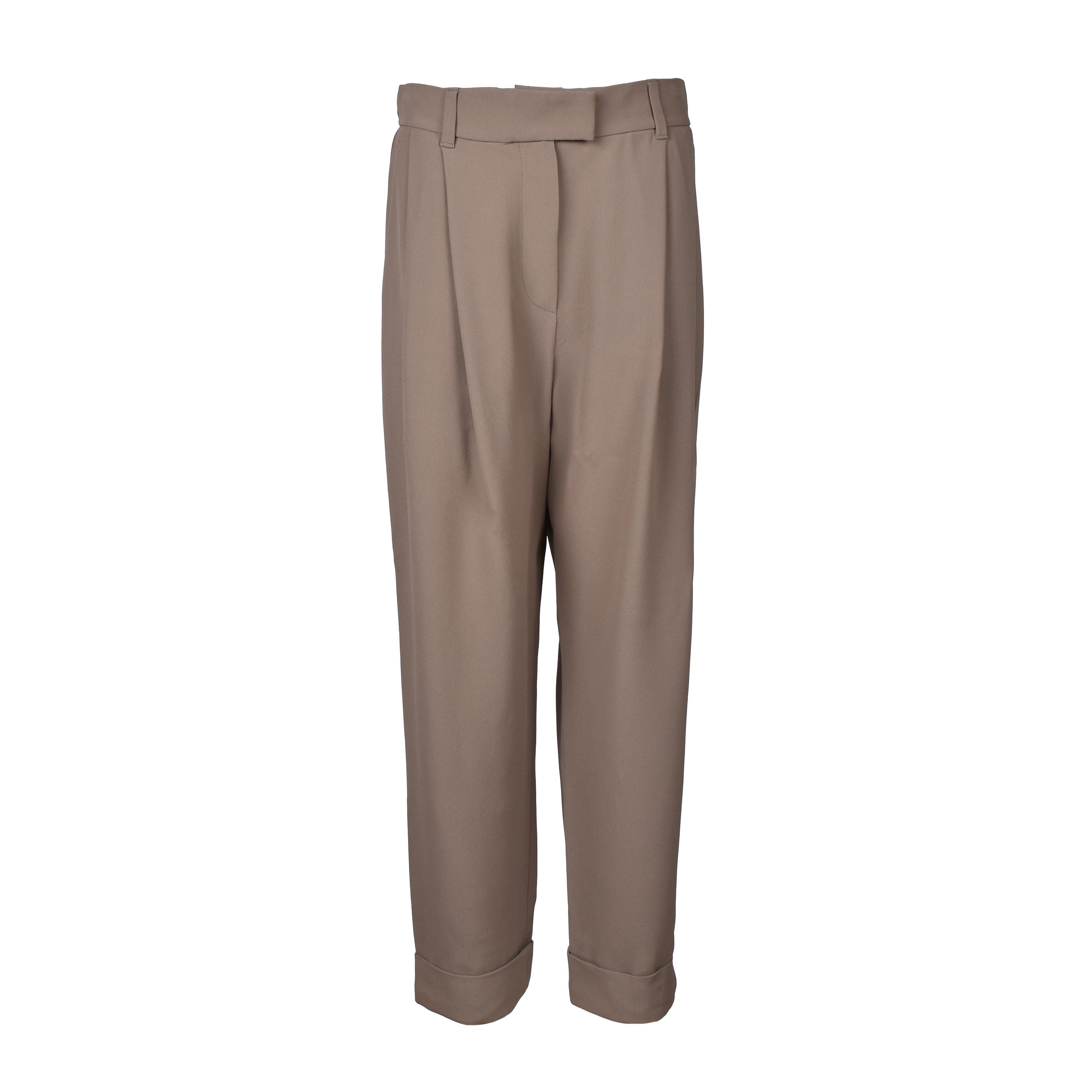 BRUNELLO CUCINELLI WOMEN'S BEIGE SILK BLEND TAILORED TROUSERS