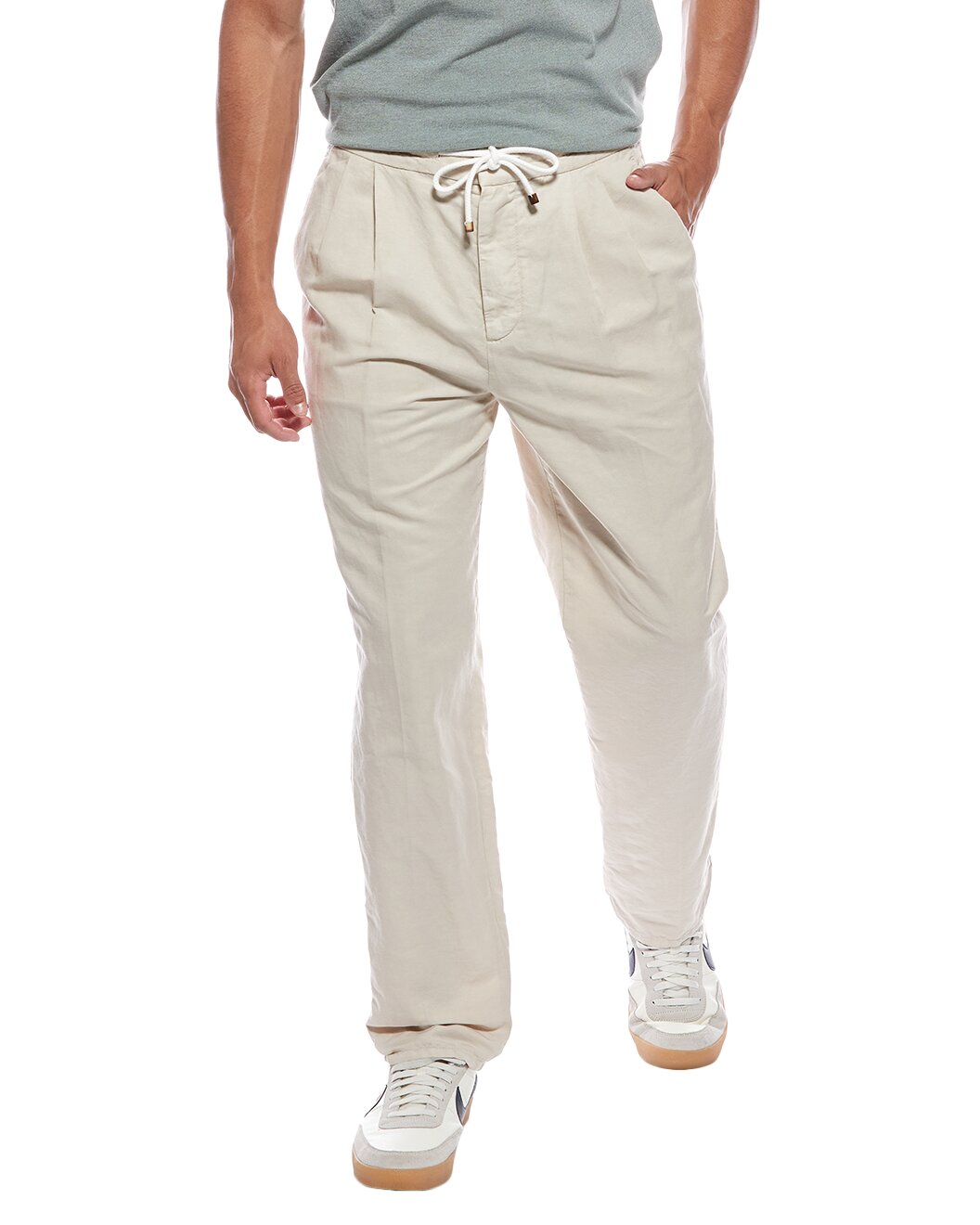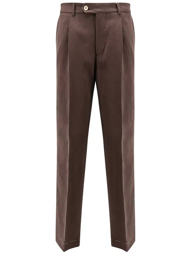 BRUNELLO CUCINELLI MEN'S BROWN LINEN TAILORED TROUSERS