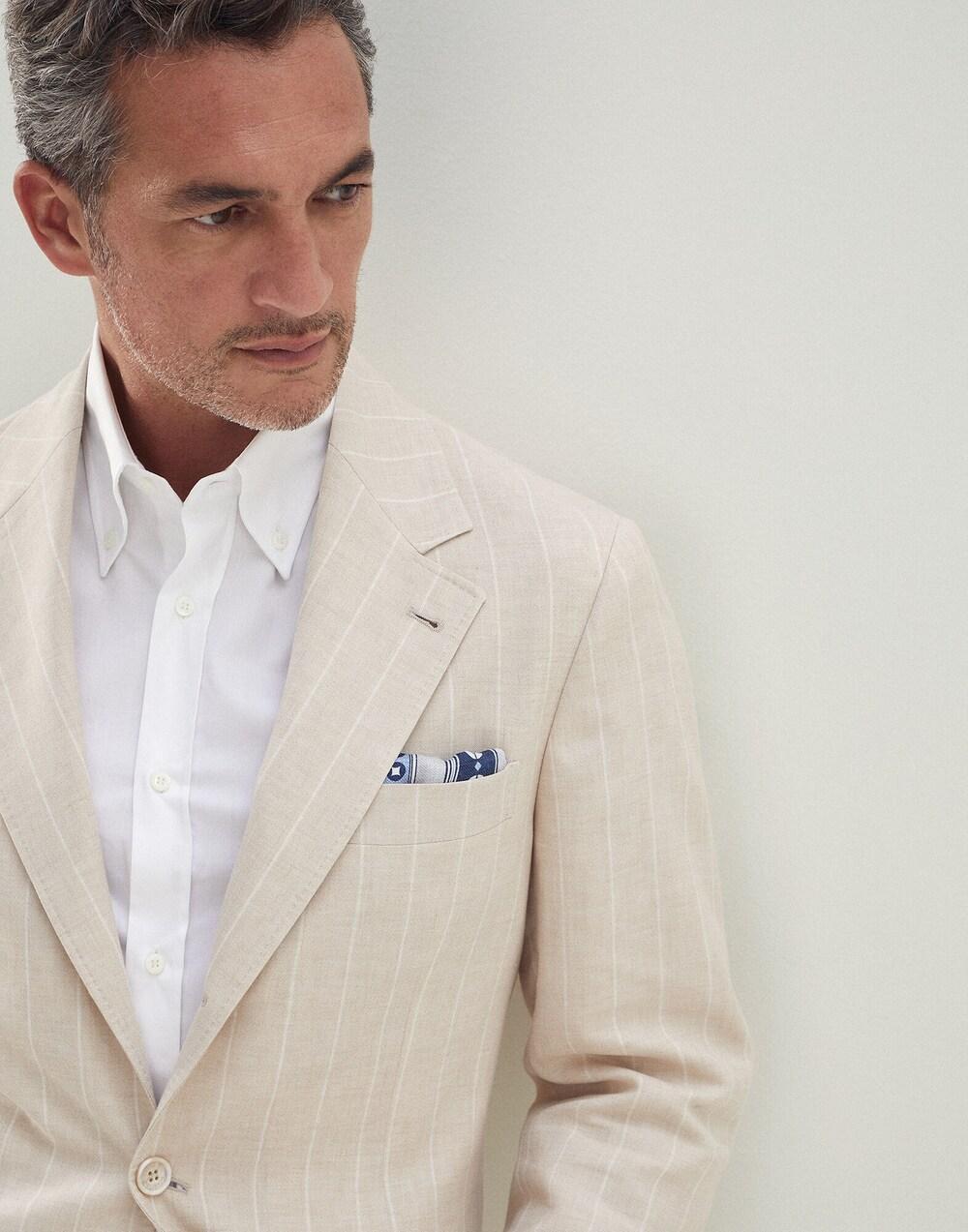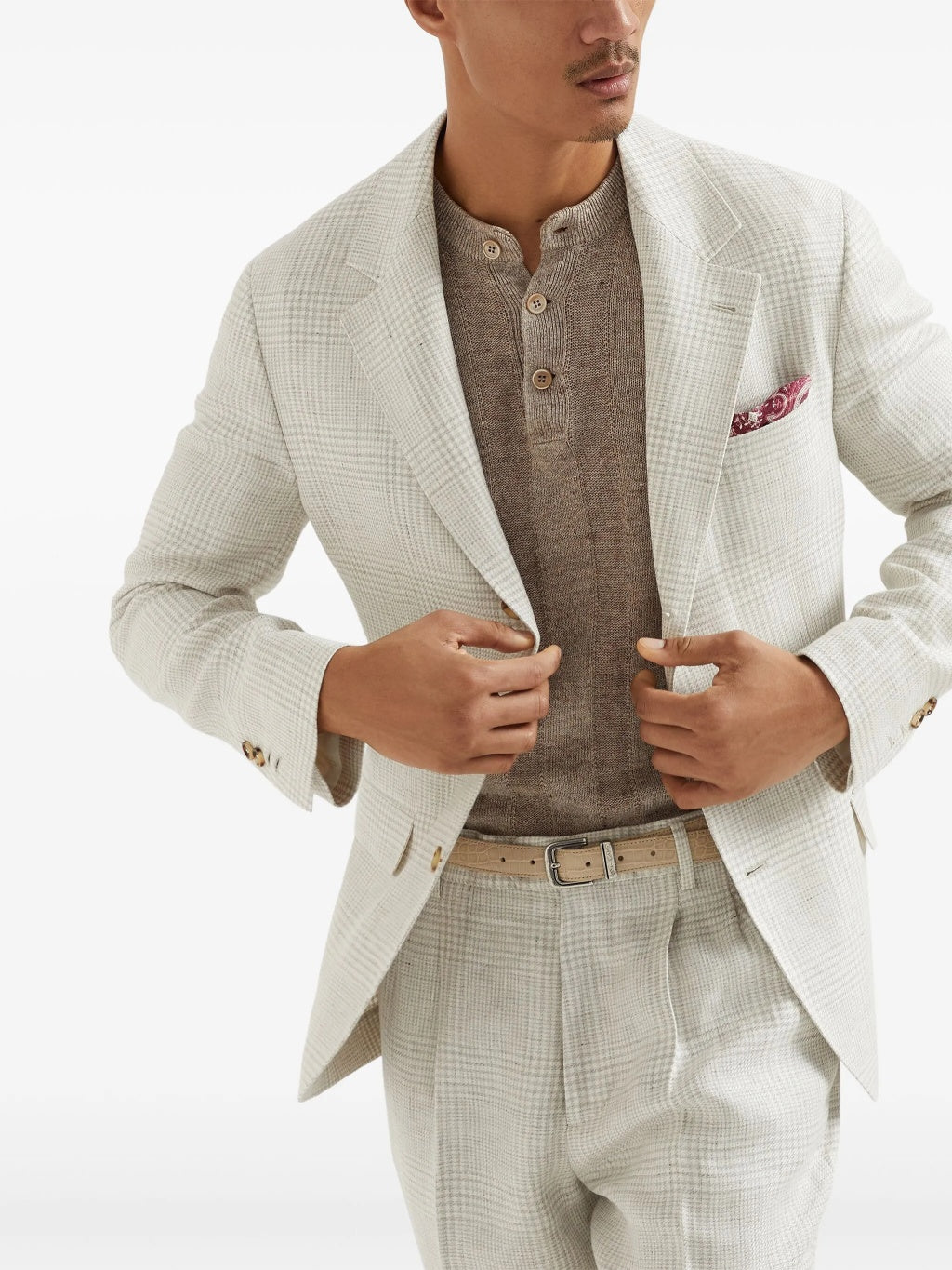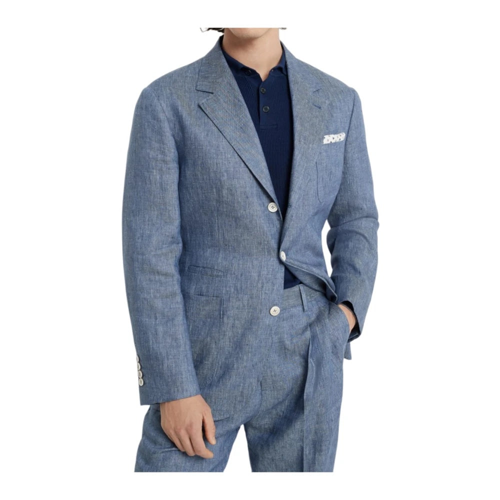 BRUNELLO CUCINELLI MEN'S INDIGO LINEN WOOL BLEND BLAZER