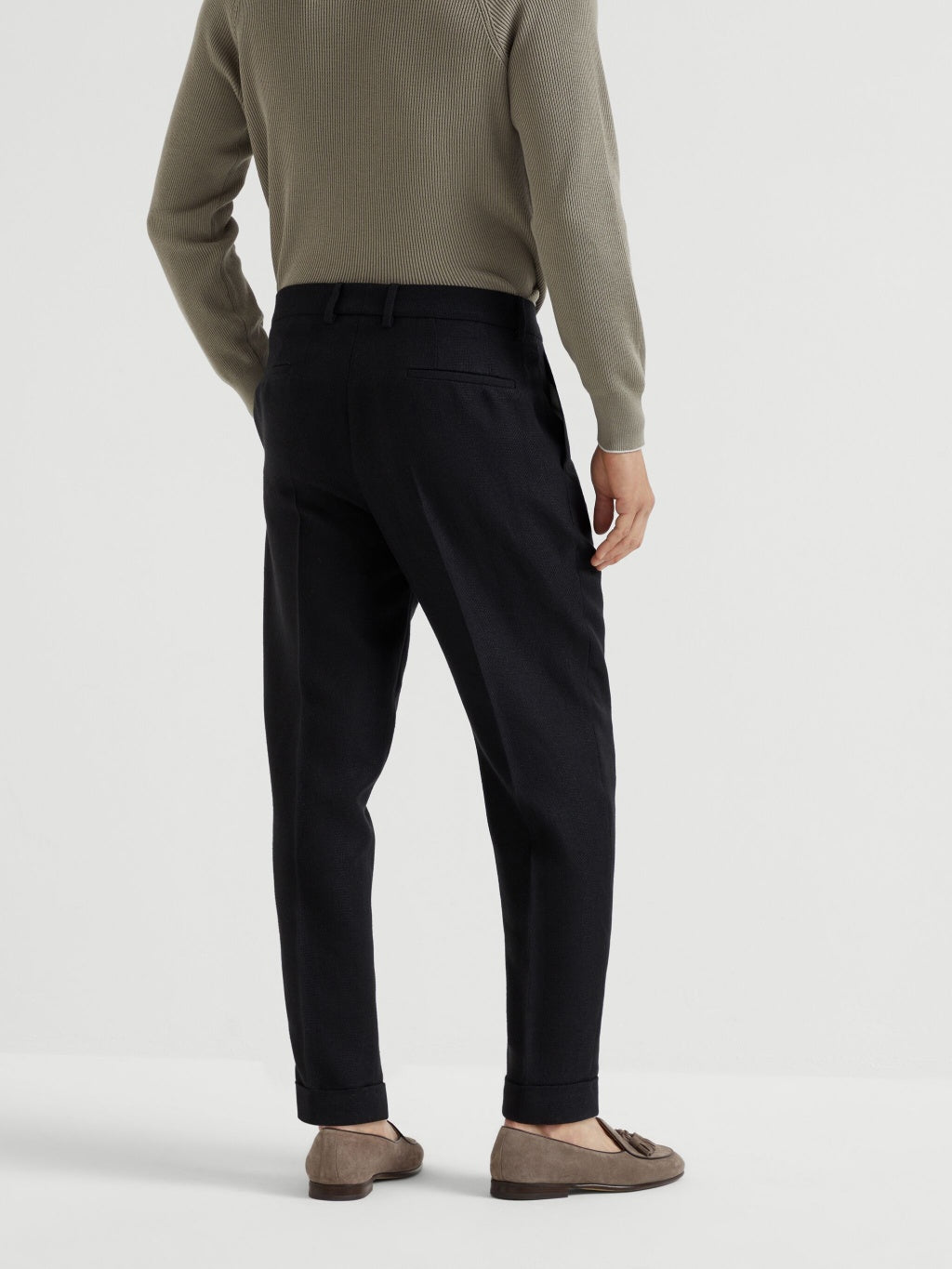 BRUNELLO CUCINELLI MEN'S BLACK LINEN SILK WOOL TROUSERS