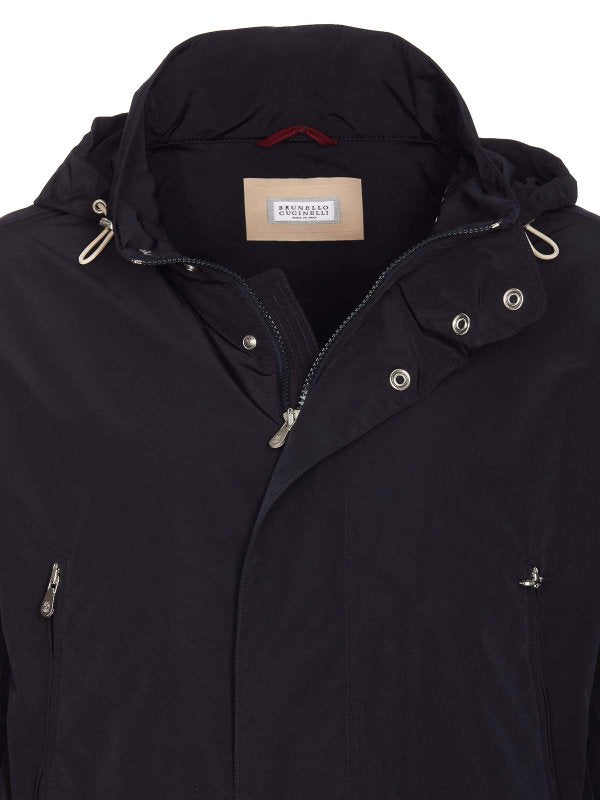 BRUNELLO CUCINELLI MEN'S NAVY HOODED JACKET WITH POCKETS