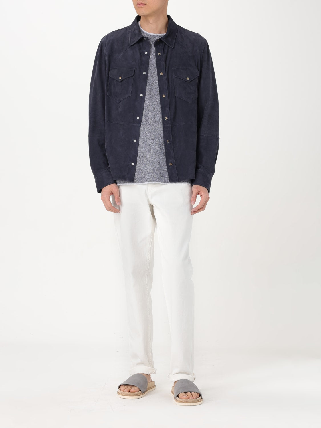 BRUNELLO CUCINELLI MEN'S NAVY SUEDE BUTTON-UP JACKET