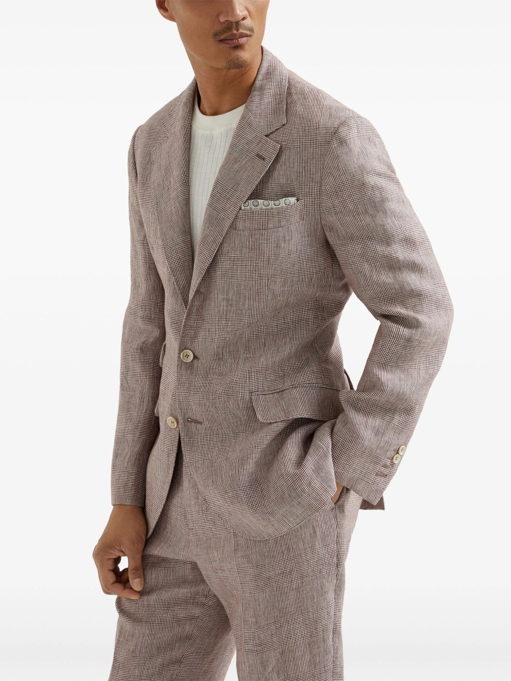 BRUNELLO CUCINELLI MEN'S GREY LINEN CHECK BLAZER