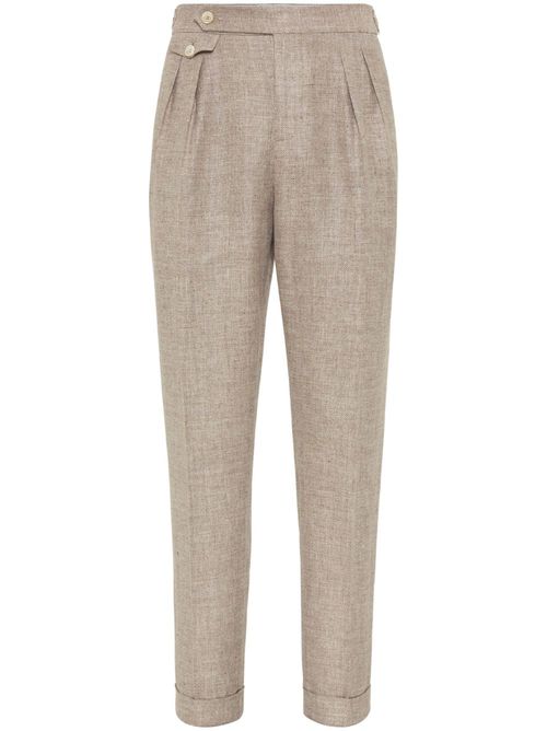 BRUNELLO CUCINELLI MEN'S BARK LINEN WOOL PLEATED TROUSERS
