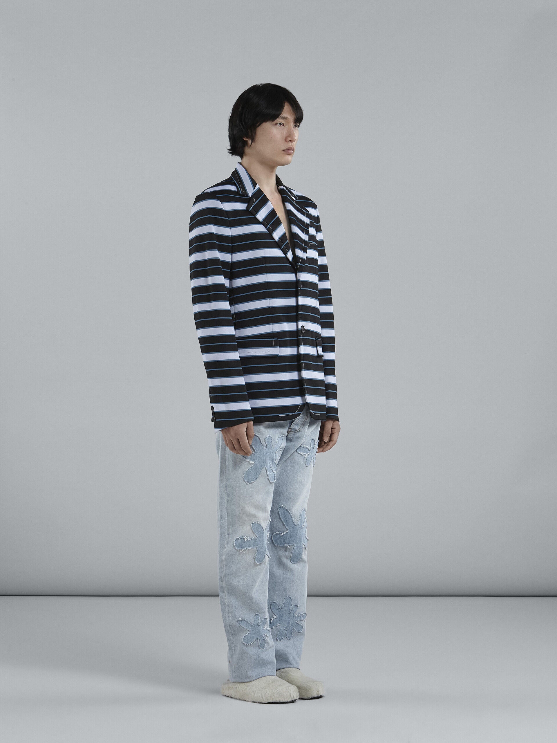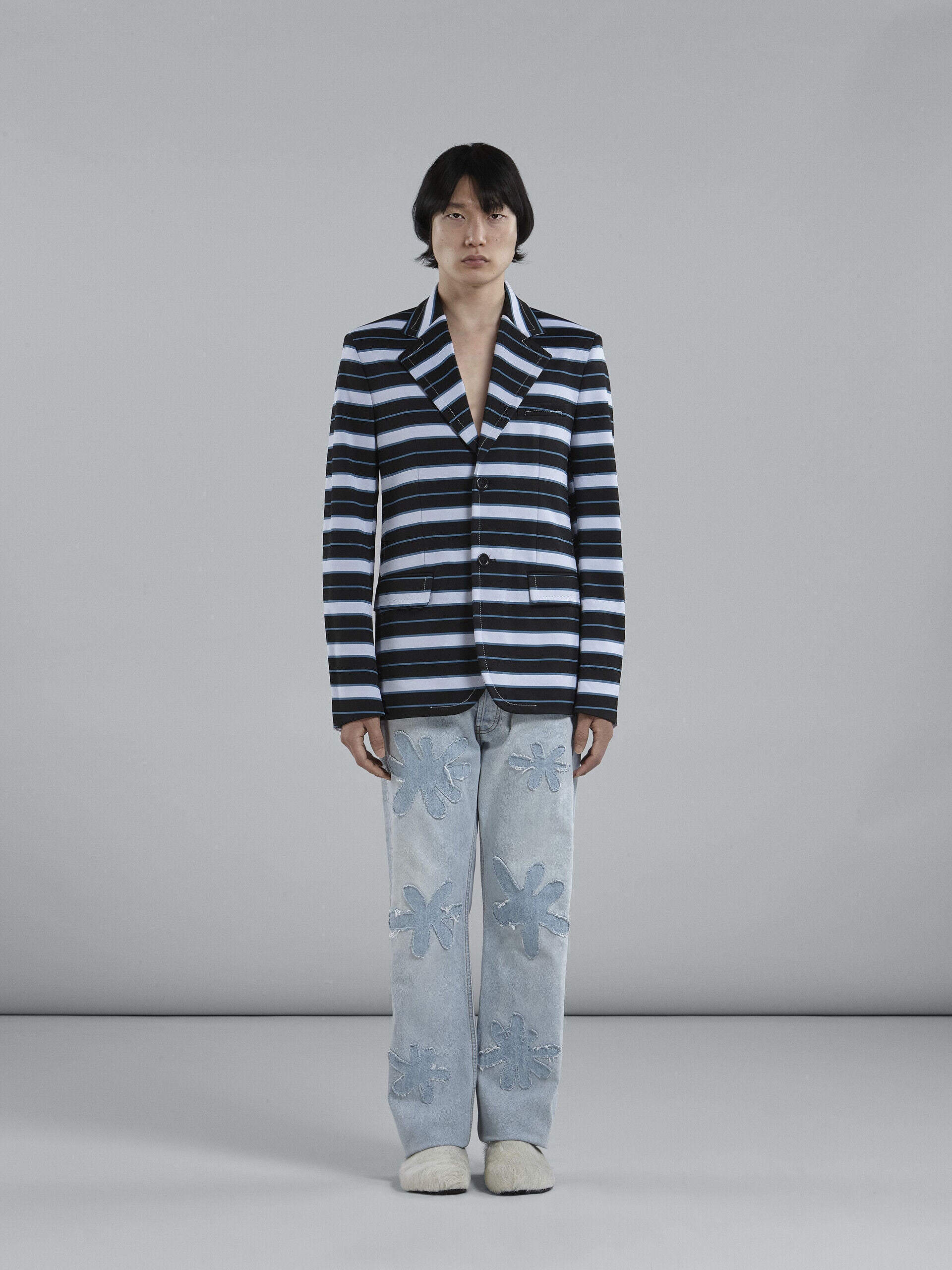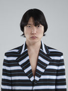 MARNI MEN'S BLACK AND BLUE STRIPED BLAZER
