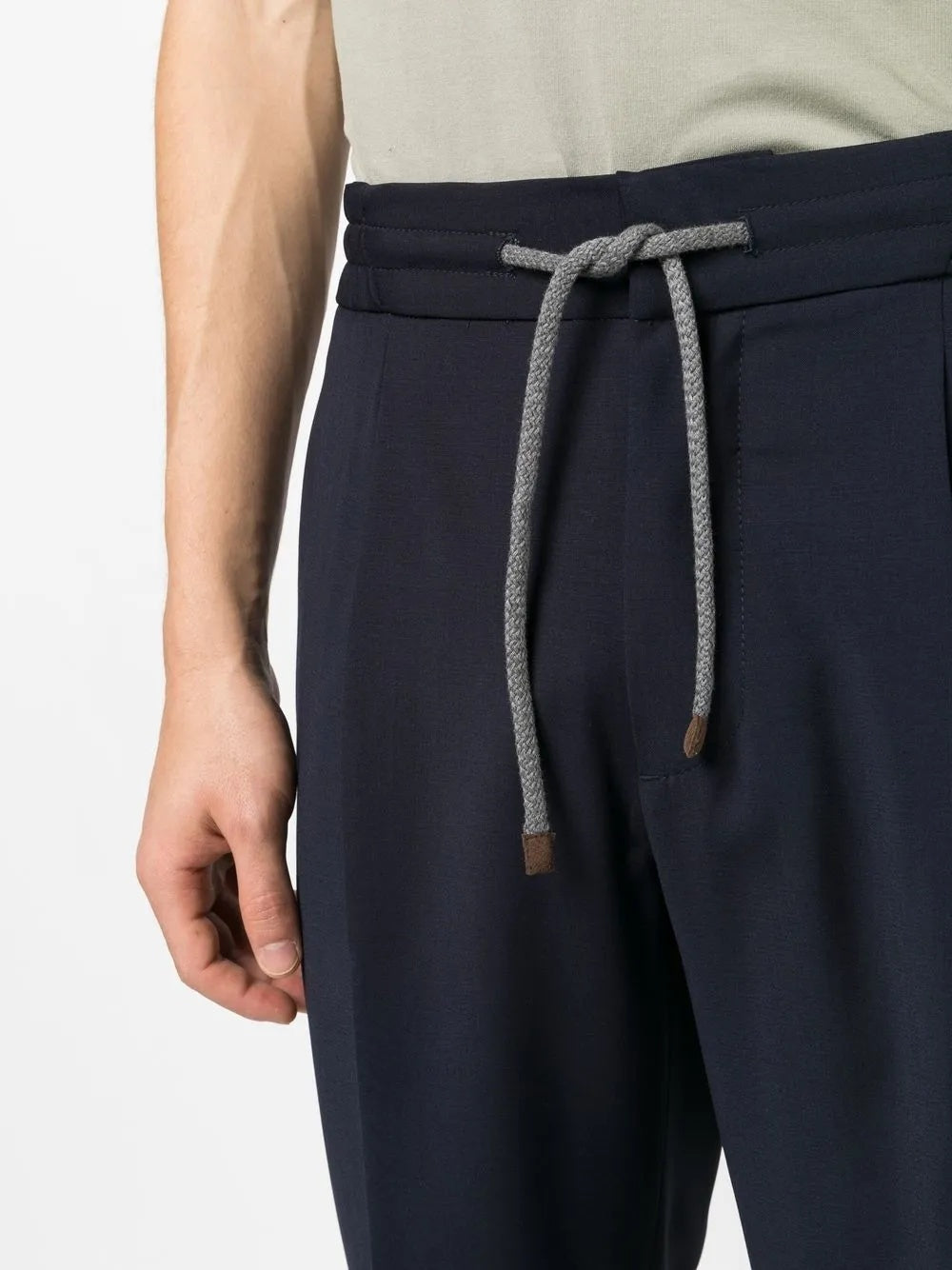 BRUNELLO CUCINELLI MEN'S NAVY WOOL DRAWSTRING TROUSERS