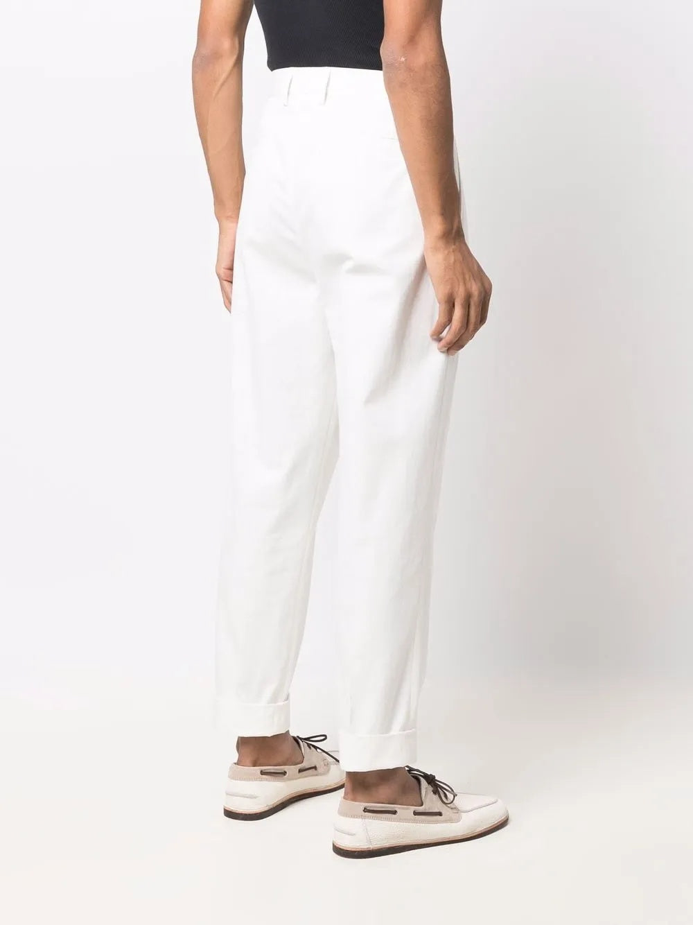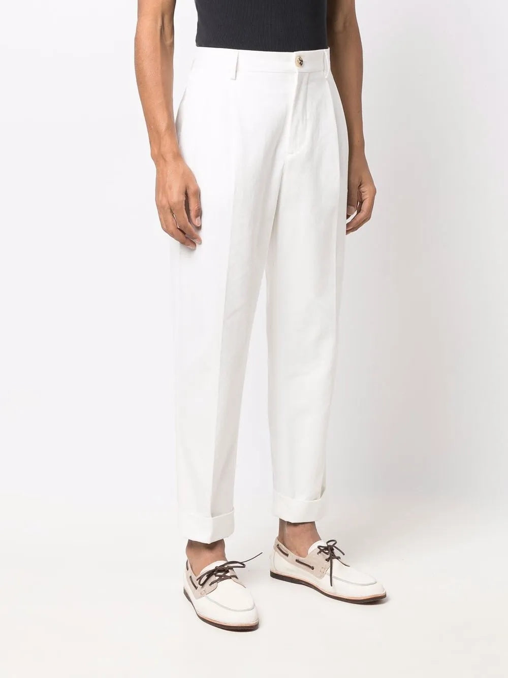 BRUNELLO CUCINELLI MEN'S WHITE PLEATED TAILORED TROUSERS