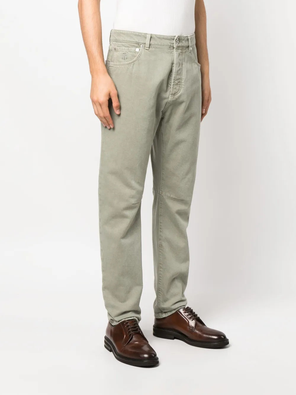BRUNELLO CUCINELLI MEN'S SAGE GREEN STRAIGHT-LEG TROUSERS