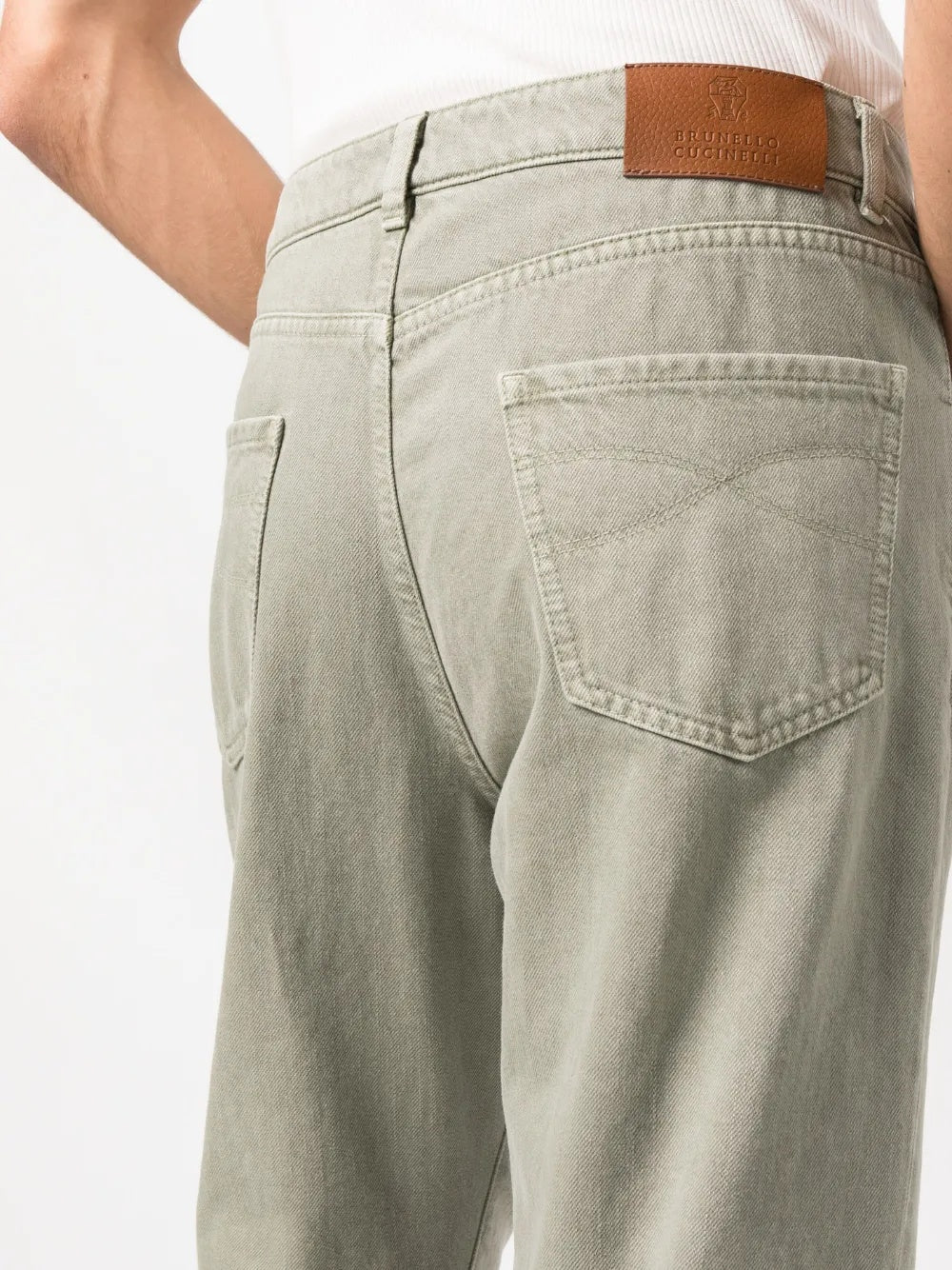 BRUNELLO CUCINELLI MEN'S MILITARY GREEN SKINNY FIT JEANS