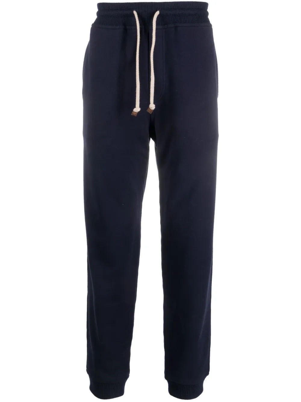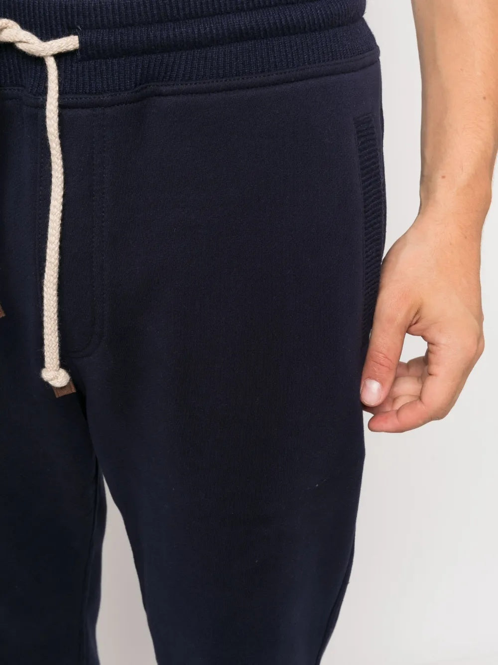 BRUNELLO CUCINELLI MEN'S NAVY DRAWSTRING KNIT TROUSERS