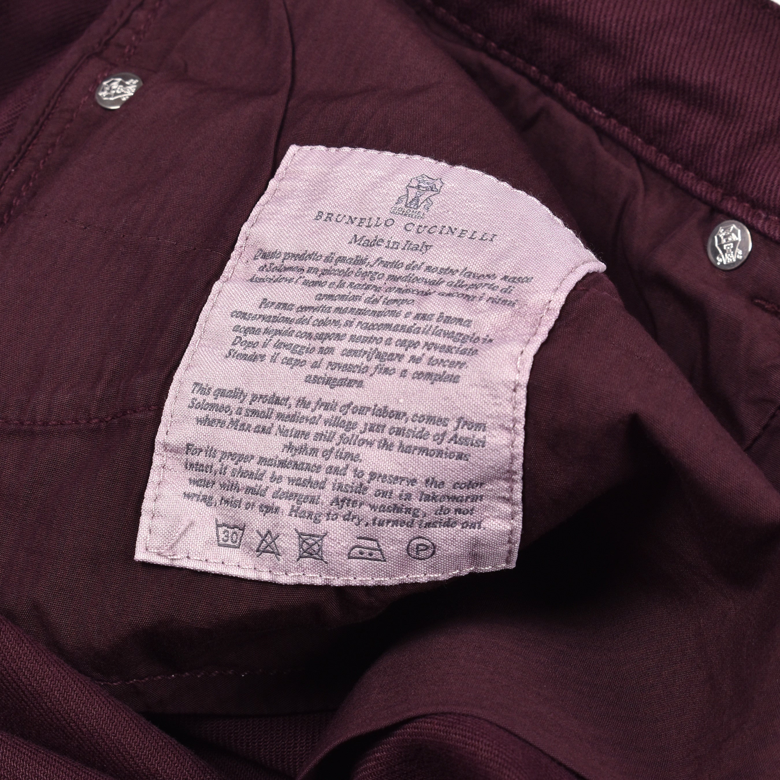 BRUNELLO CUCINELLI MEN'S BURGUNDY DENIM FIVE-POCKET TROUSERS