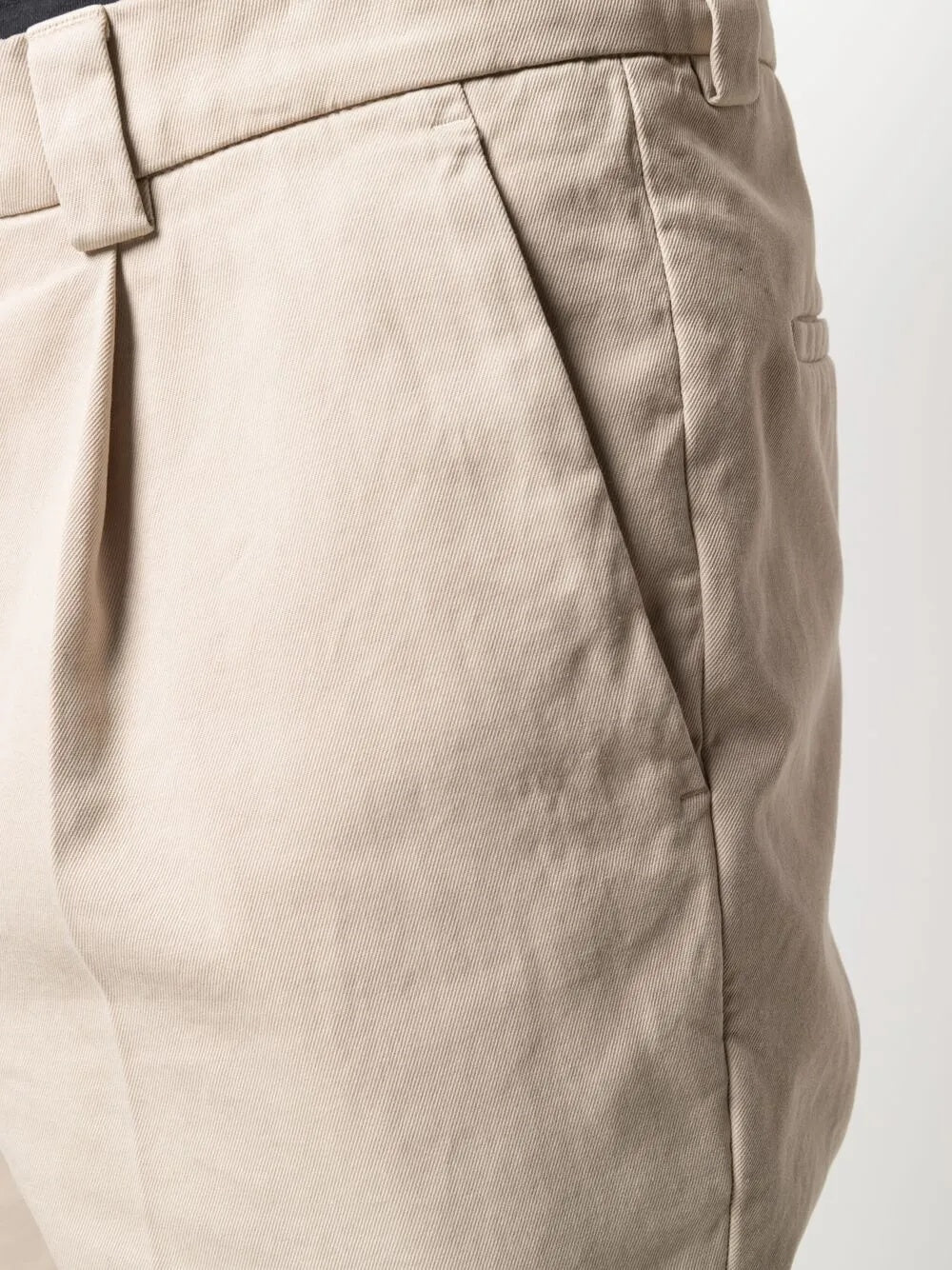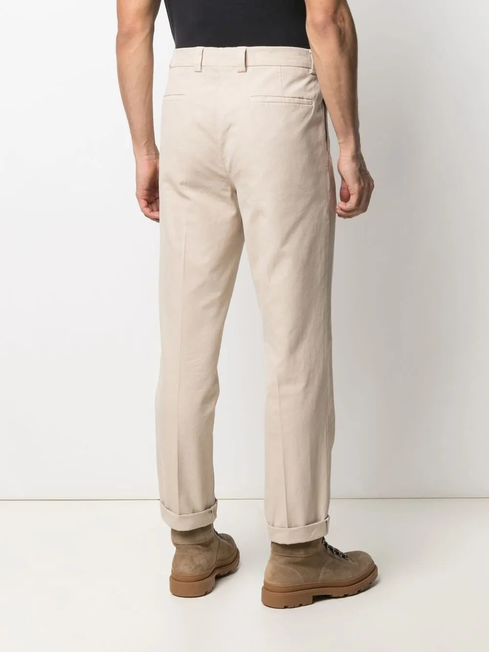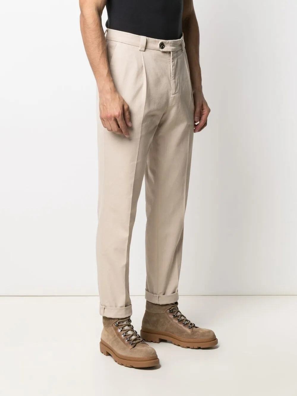 BRUNELLO CUCINELLI MEN'S BEIGE TAILORED TROUSERS WITH CUFFS