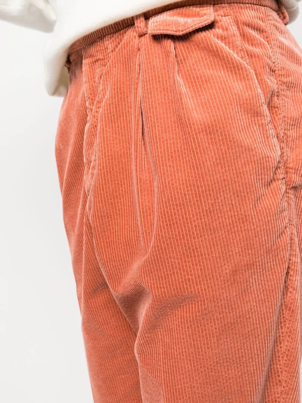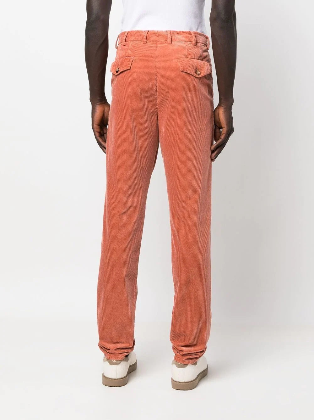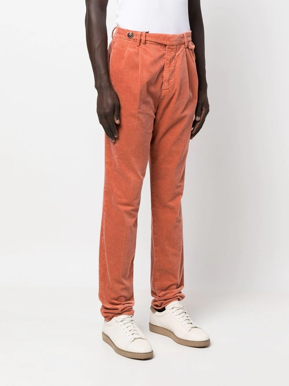 BRUNELLO CUCINELLI MEN'S ORANGE CORDUROY PLEATED TROUSERS