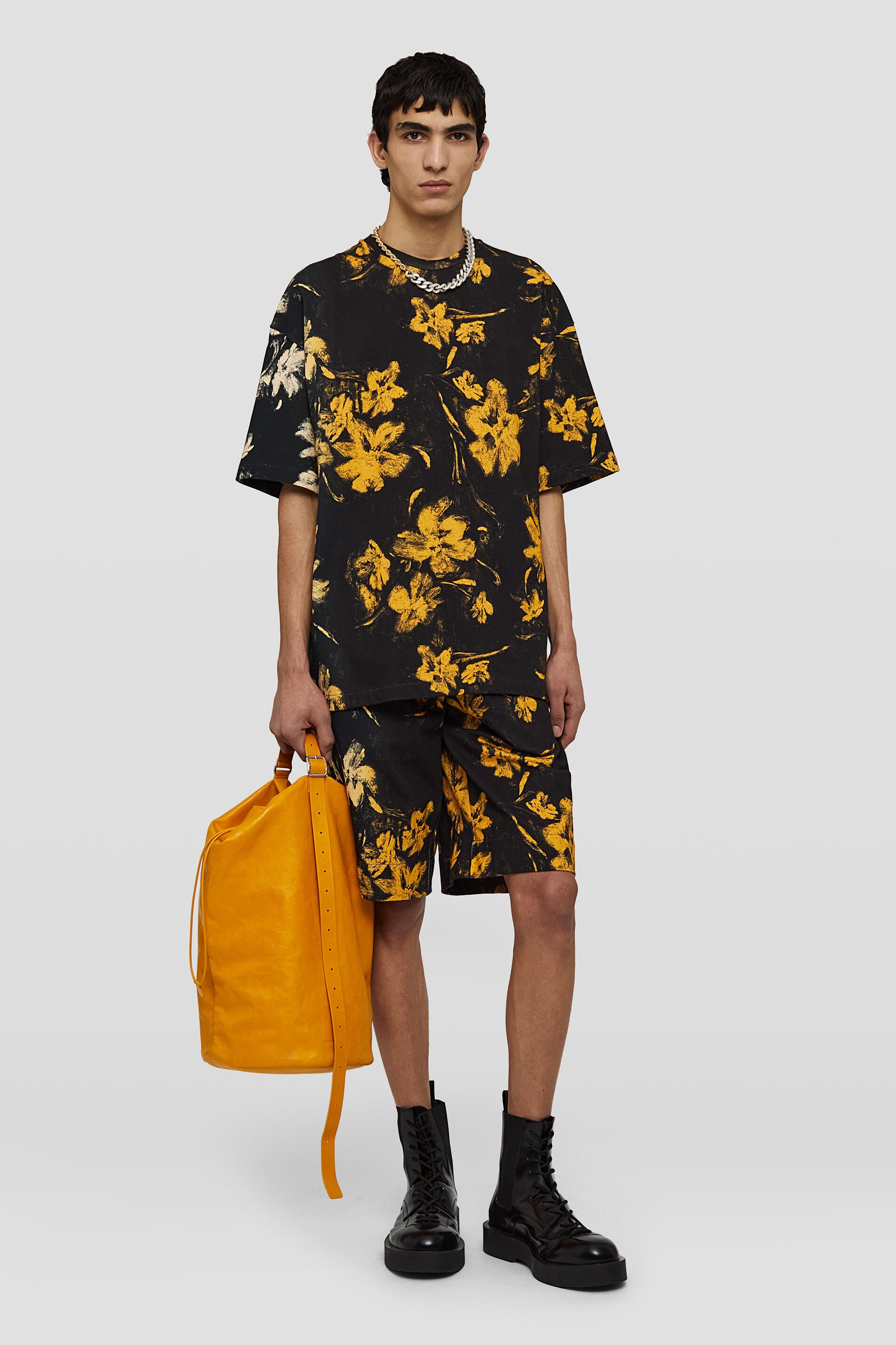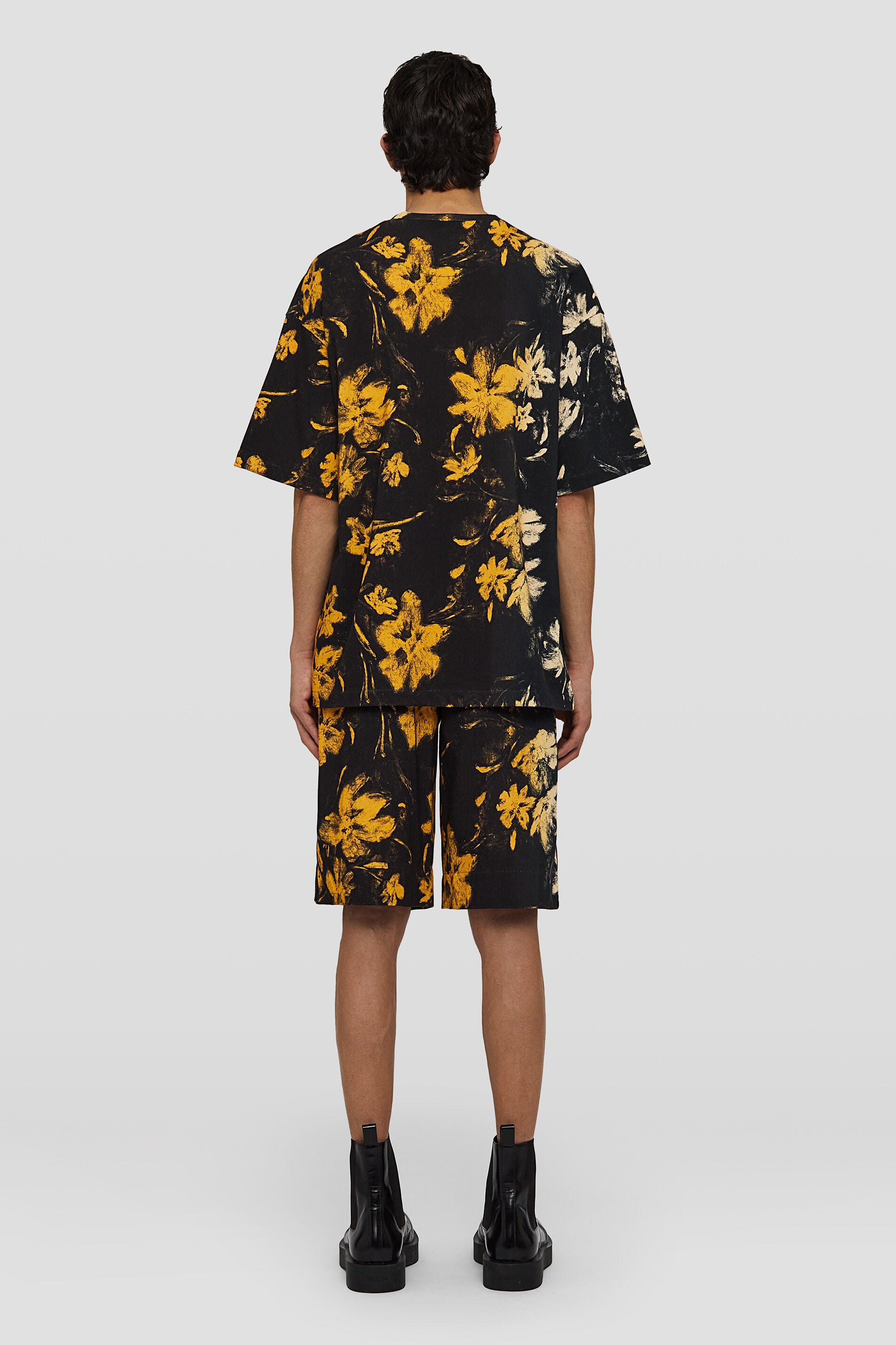 JIL SANDER MEN'S BLACK FLORAL TAILORED SHORTS