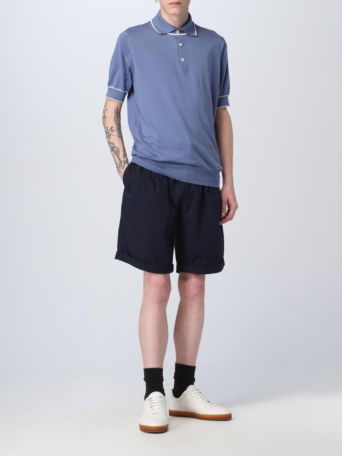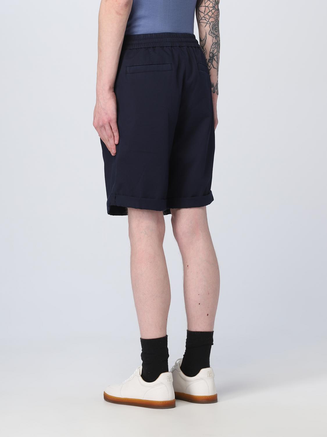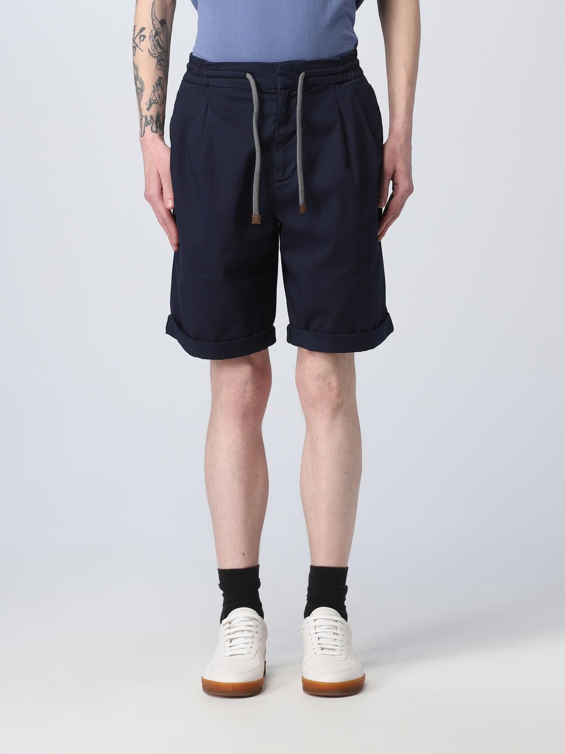 BRUNELLO CUCINELLI MEN'S NAVY TAILORED SHORTS WITH DRAWSTRING