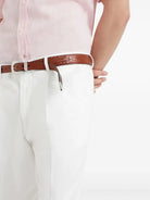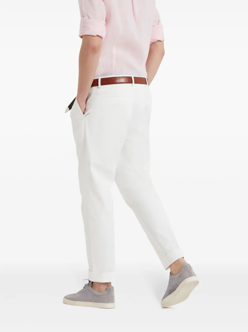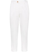 BRUNELLO CUCINELLI MEN'S WHITE TAILORED TROUSERS WITH BUTTON DETAIL