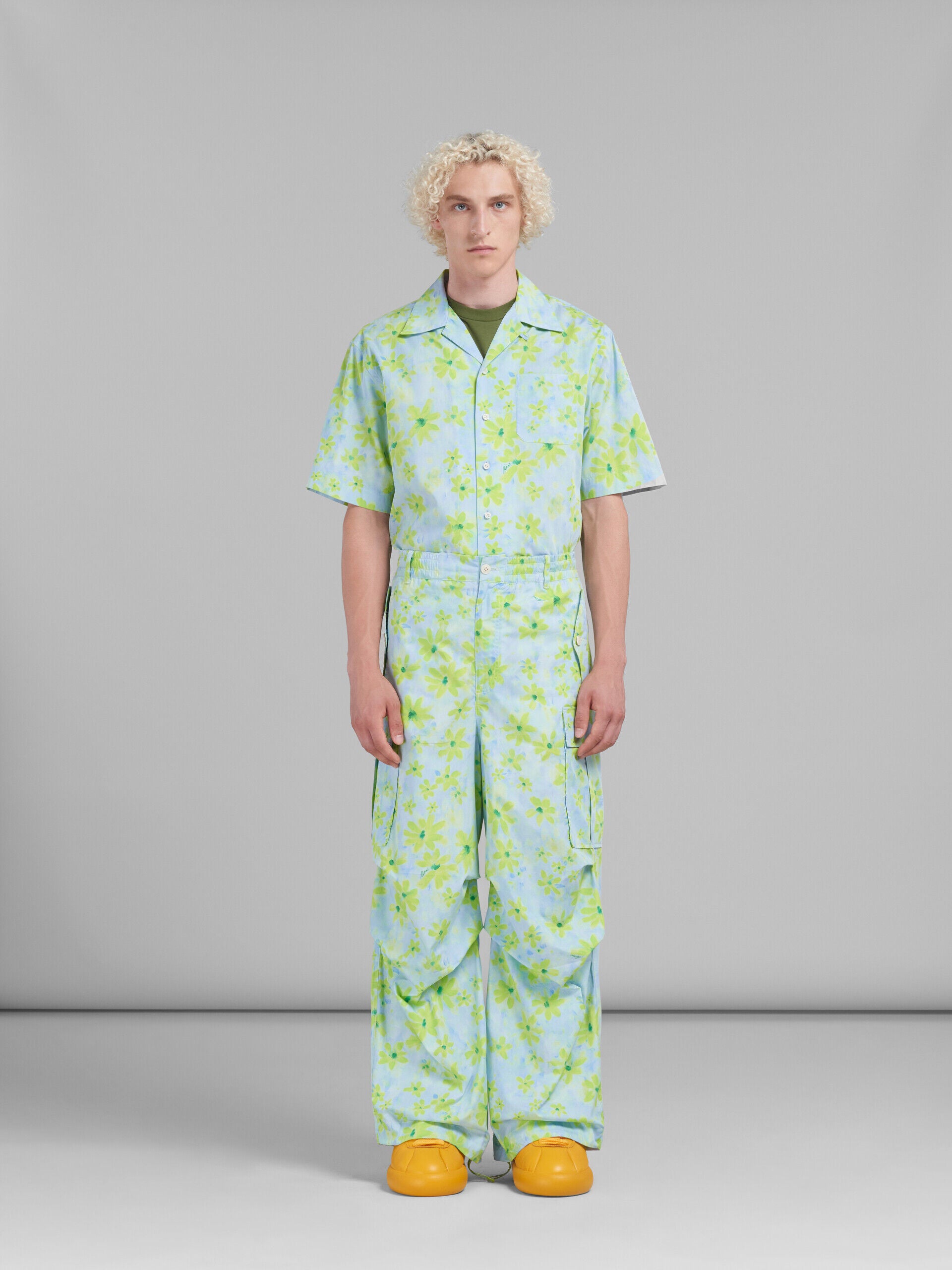 MARNI MEN'S AQUAMARINE FLORAL WIDE-LEG CARGO TROUSERS