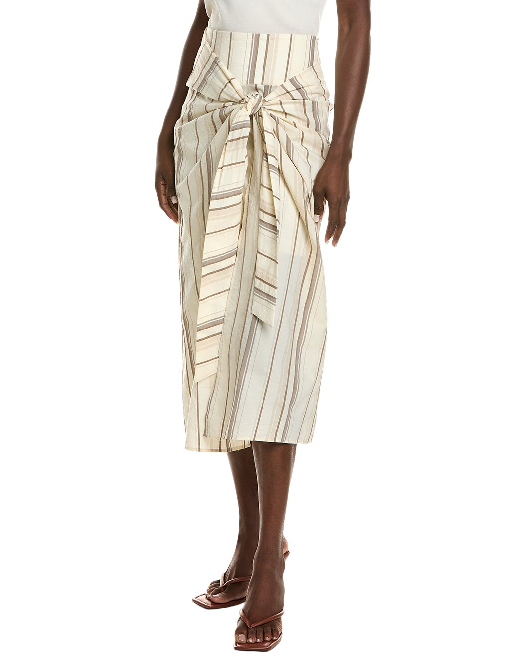 BRUNELLO CUCINELLI WOMEN'S STRIPED WRAP MIDI SKIRT