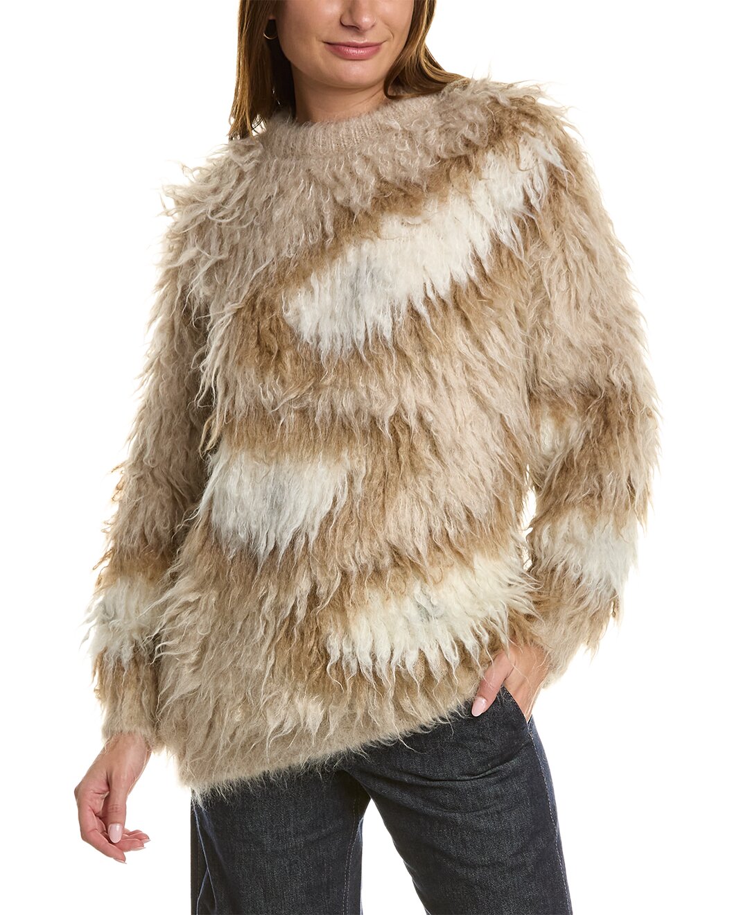 BRUNELLO CUCINELLI WOMEN'S BEIGE SHAGGY KNIT SWEATER