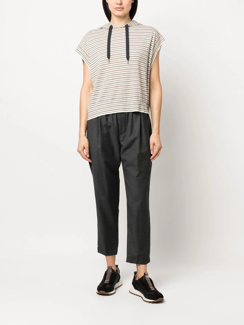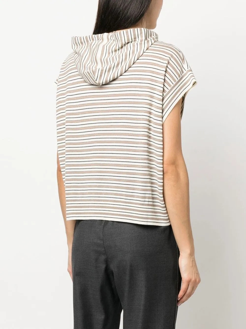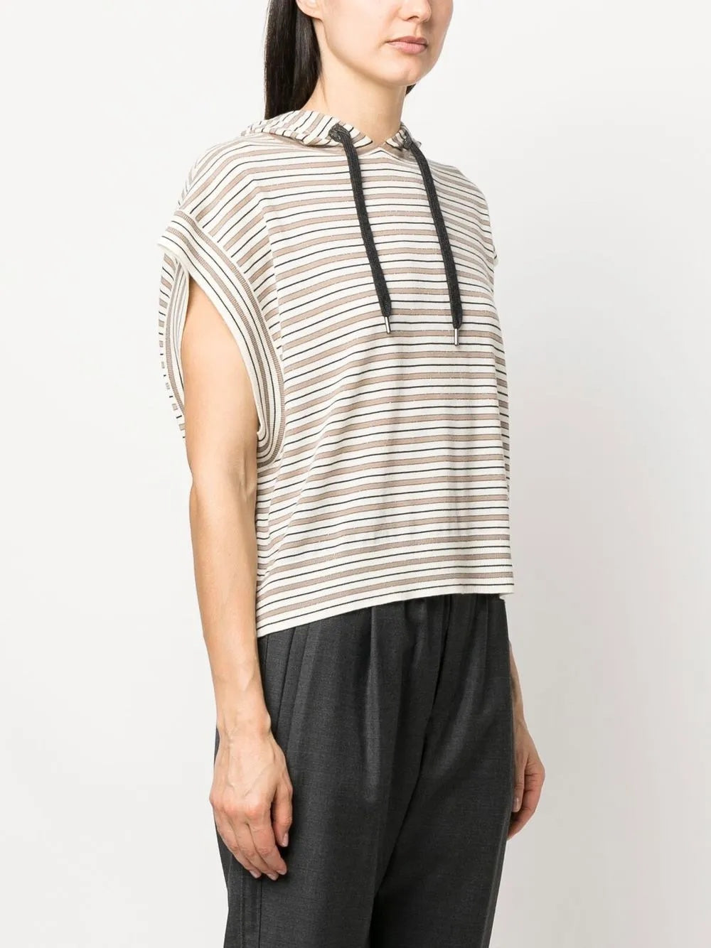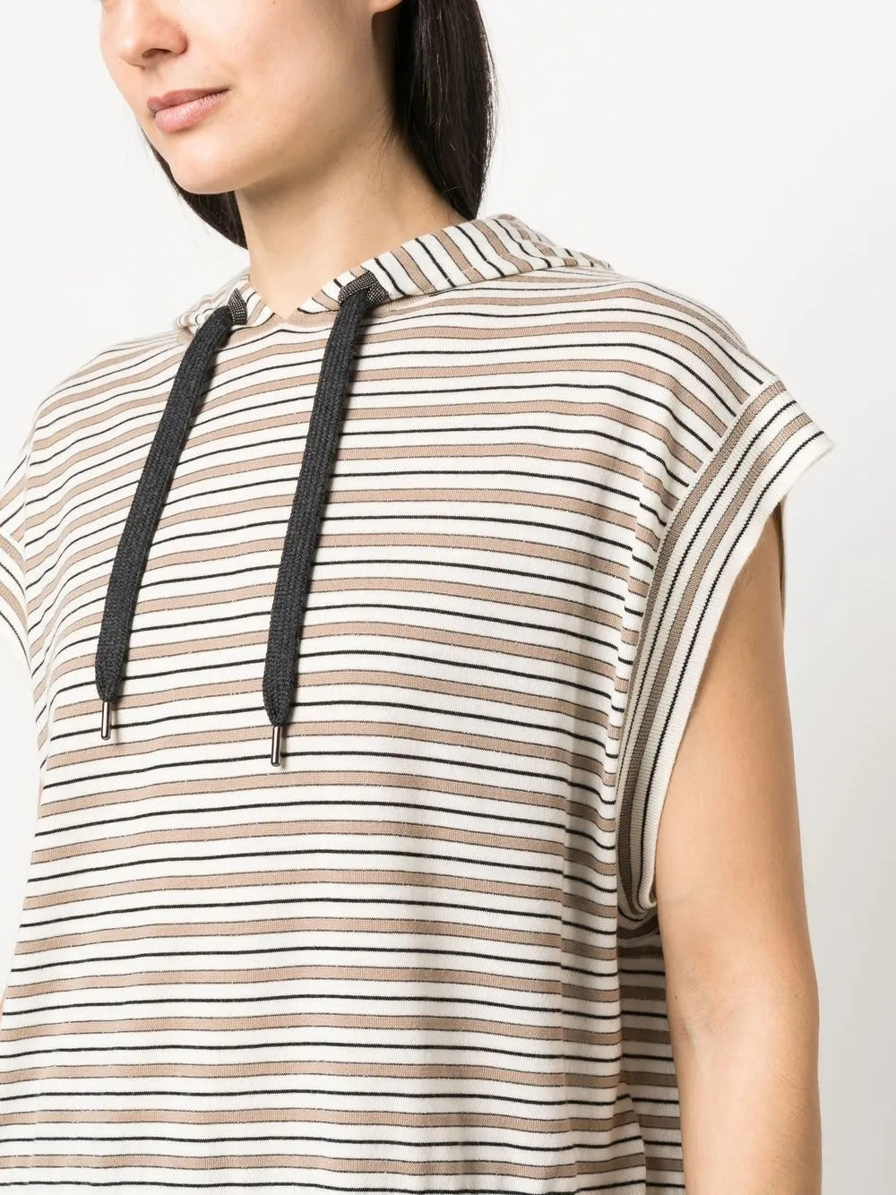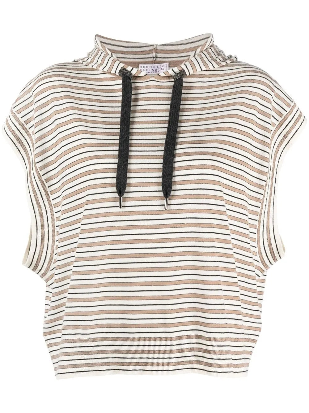BRUNELLO CUCINELLI WOMEN'S STRIPED SLEEVELESS HOODED SWEATER