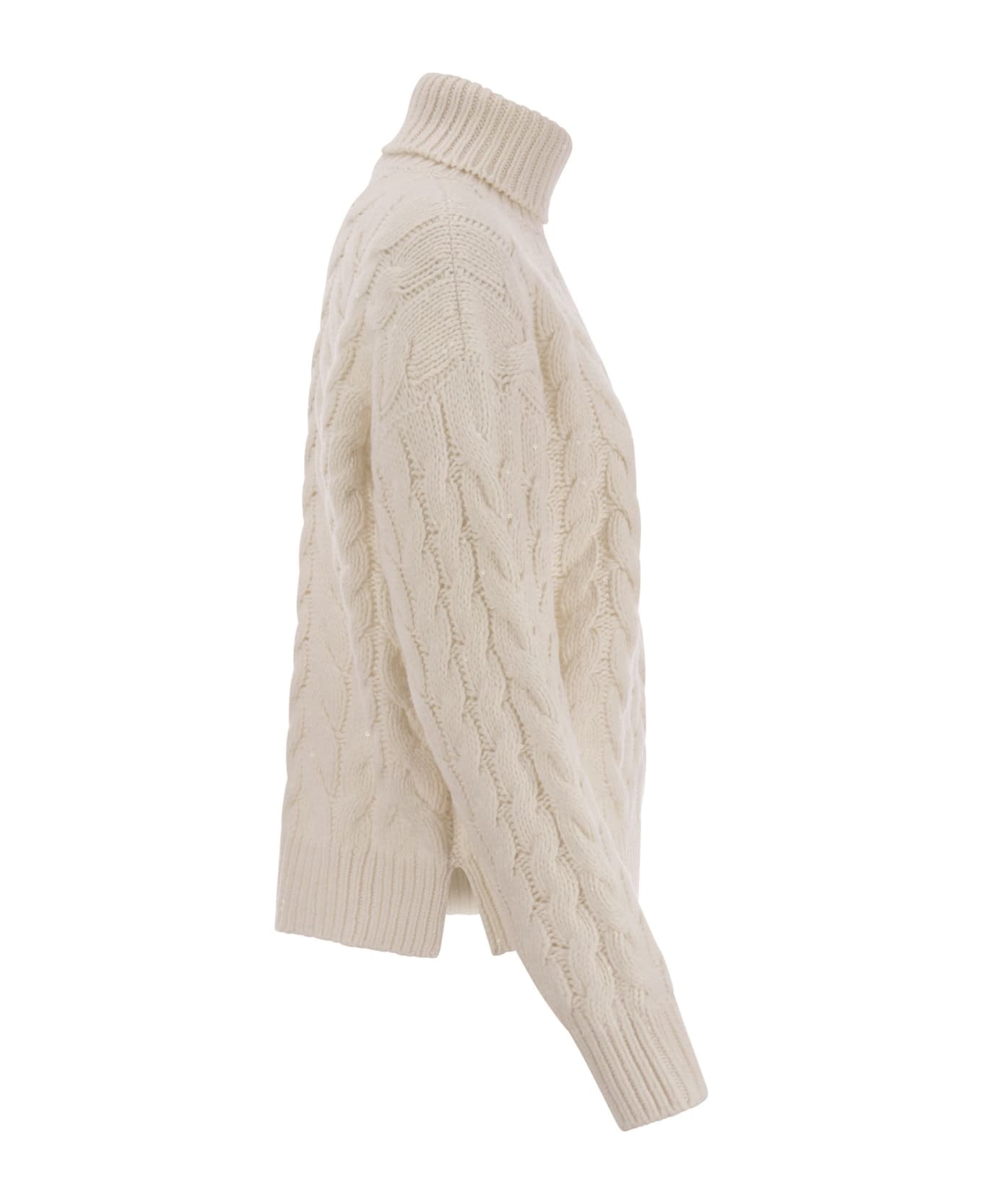 BRUNELLO CUCINELLI WOMEN'S IVORY CABLE KNIT TURTLENECK SWEATER