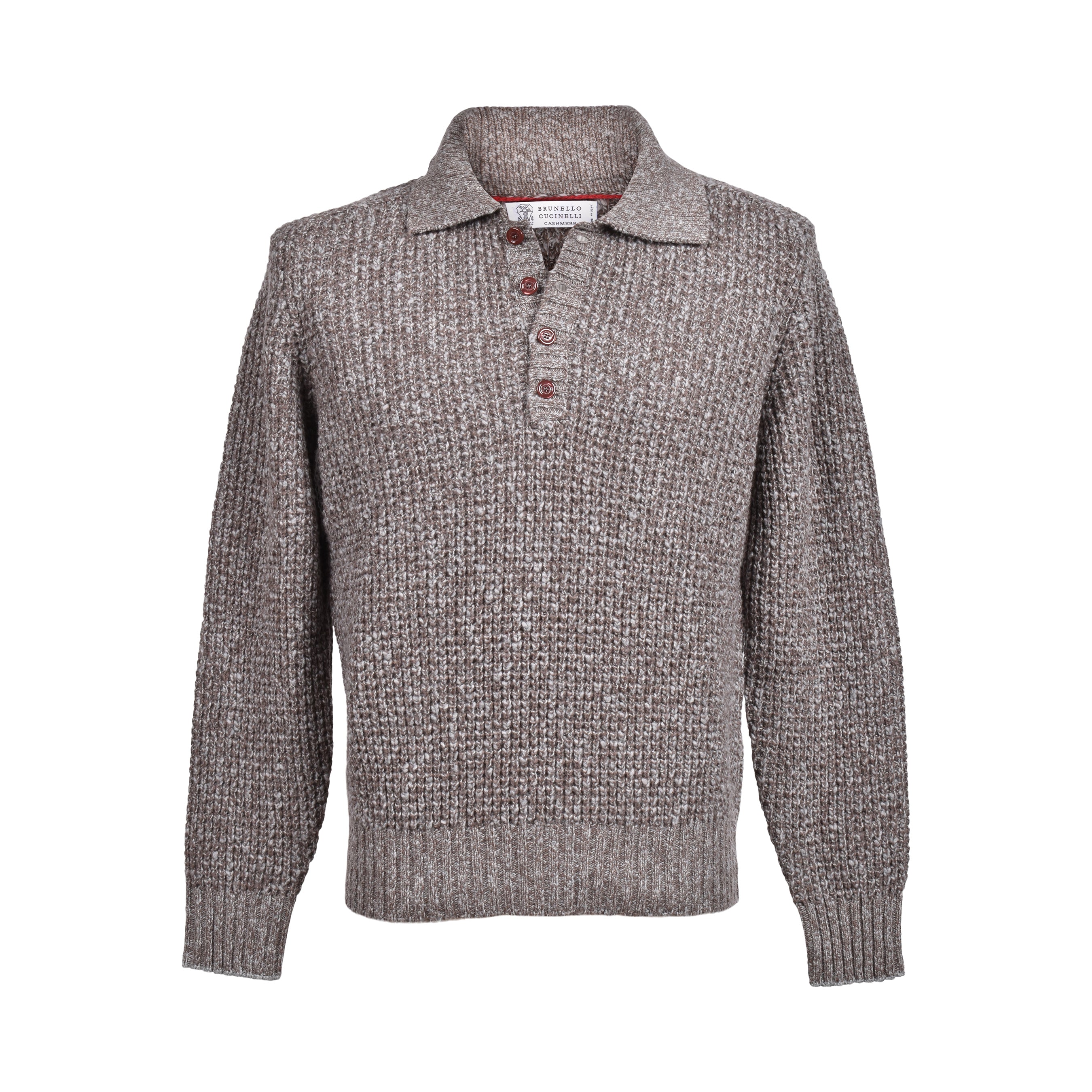 BRUNELLO CUCINELLI MEN'S BROWN CASHMERE WOOL KNIT SWEATER