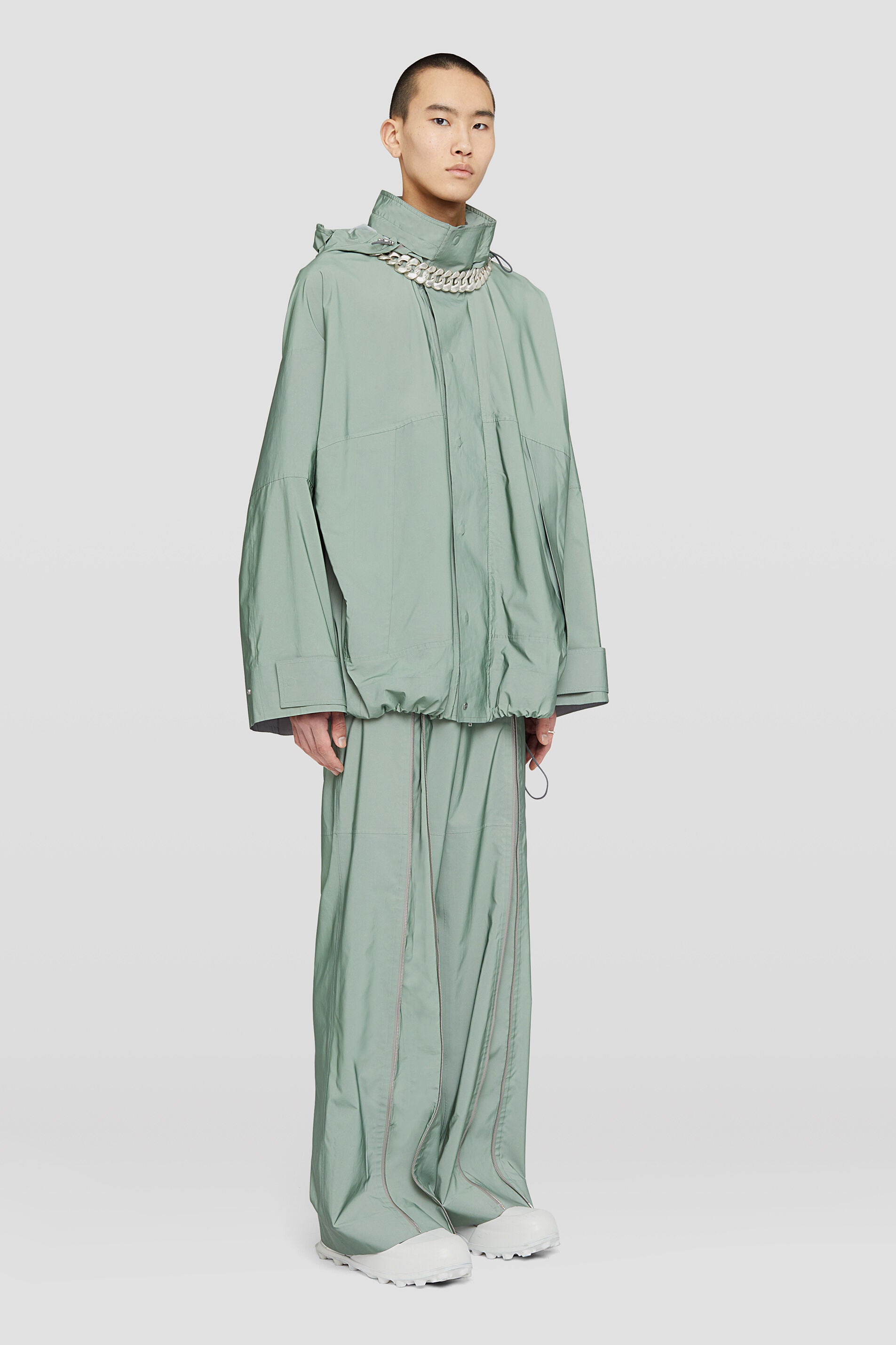 JIL SANDER MEN'S SAGE HOODED JACKET WITH DRAWSTRINGS MSRP $3190