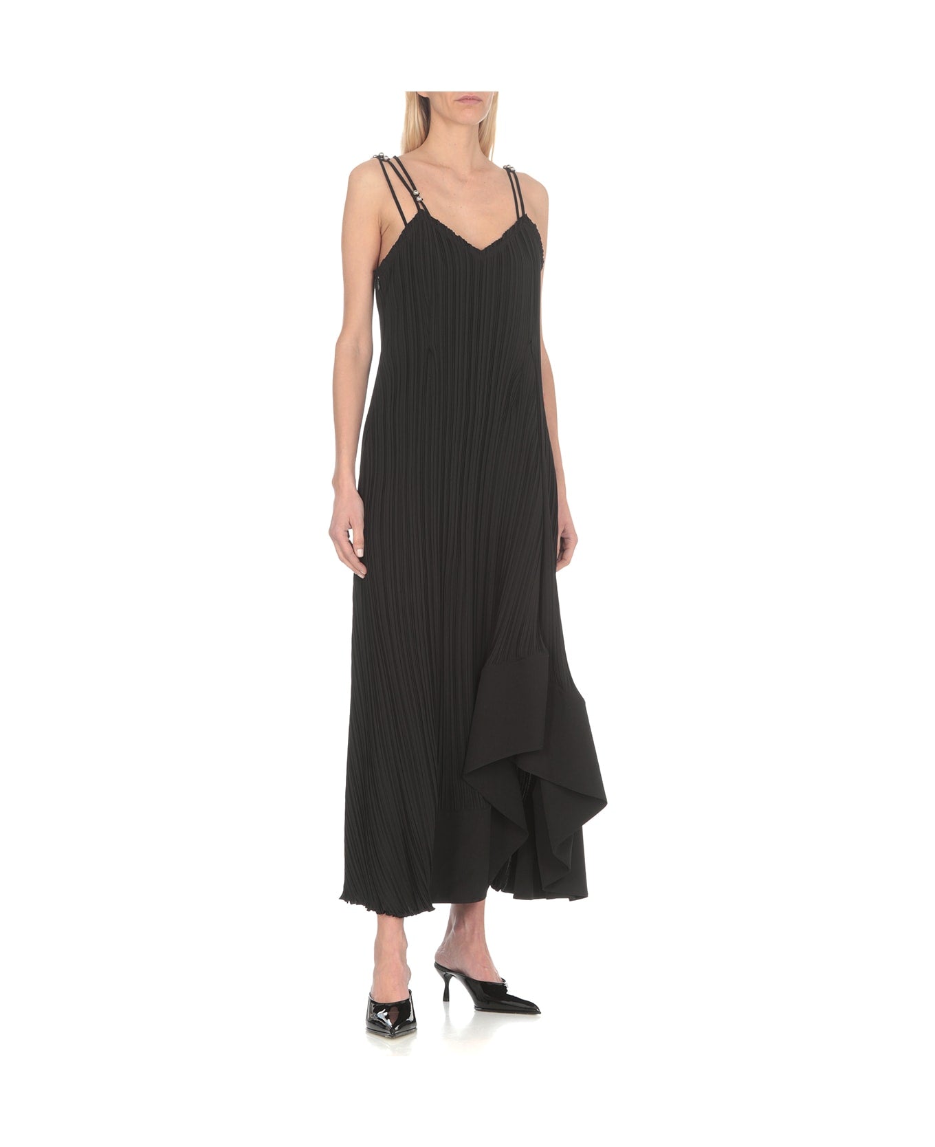 LANVIN WOMEN'S BLACK PLEATED LONG STRAP DRESS