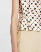 LANVIN WOMEN'S CREAM PATTERNED SLEEVELESS CROPPED TOP
